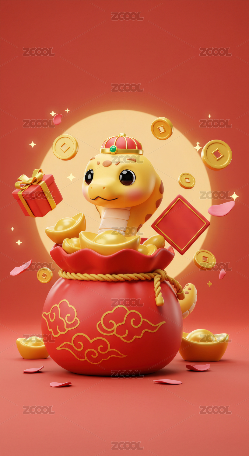 蛇年,新年,形象设计,立体,拜年,红火,2025,红包,祝福,红色