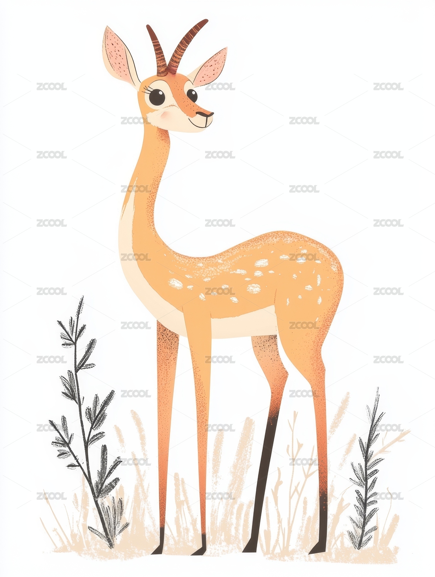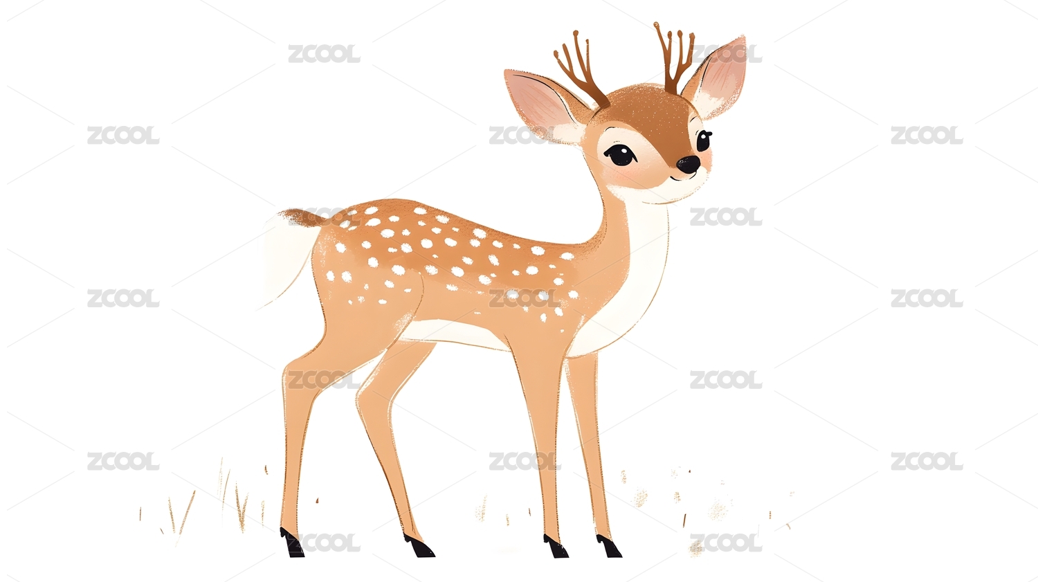 手绘站立回头看的可爱梅花鹿野生动物插画