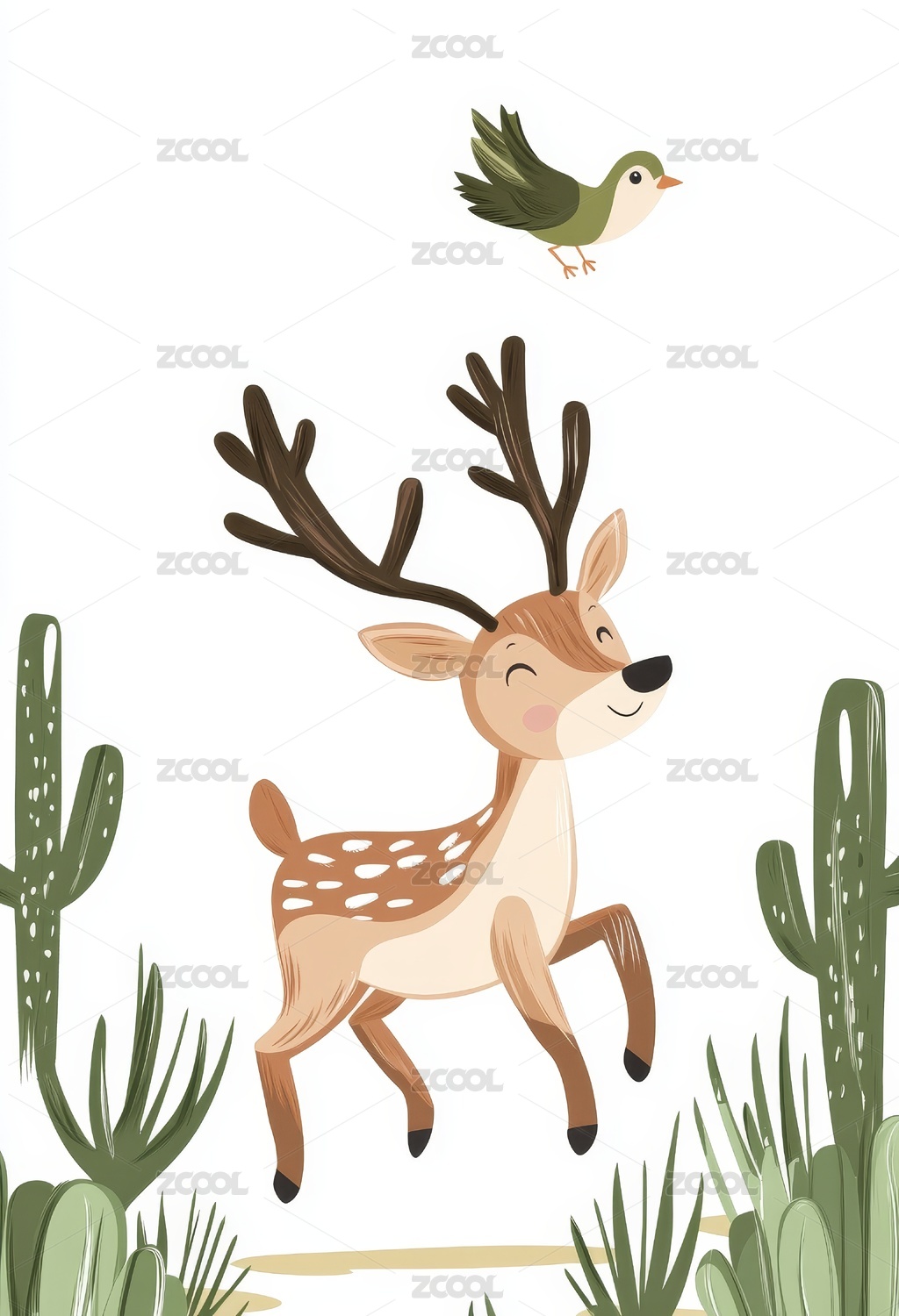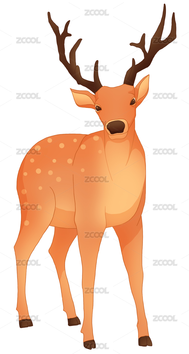 绿色背景橘色梅花鹿卡通可爱斑点小鹿元素