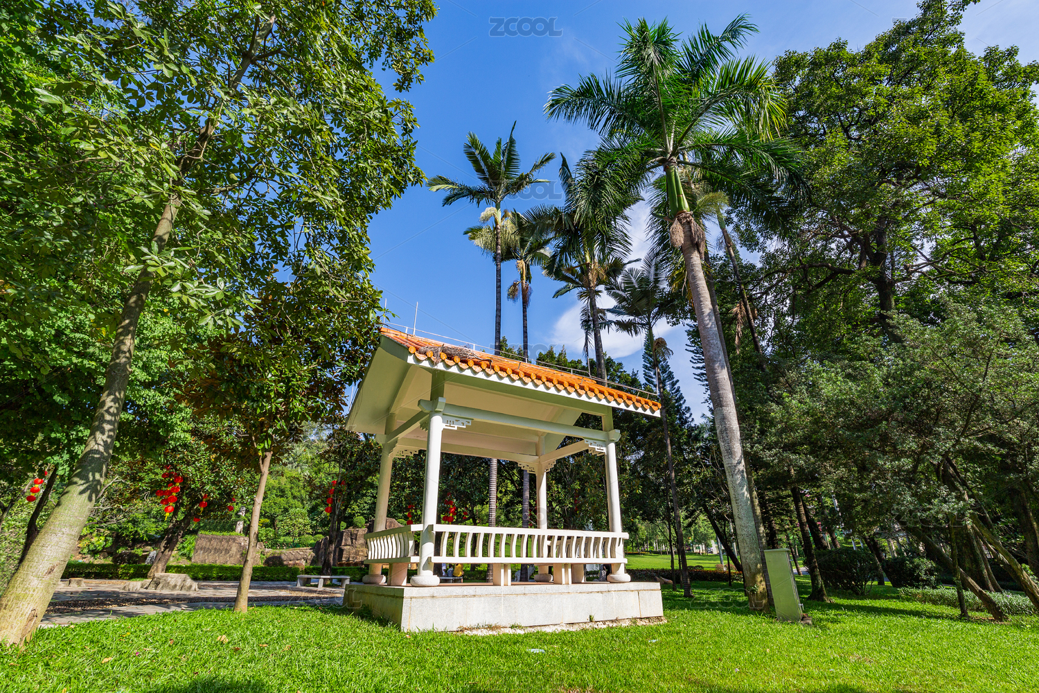 中国南方城市秋季公园的凉亭