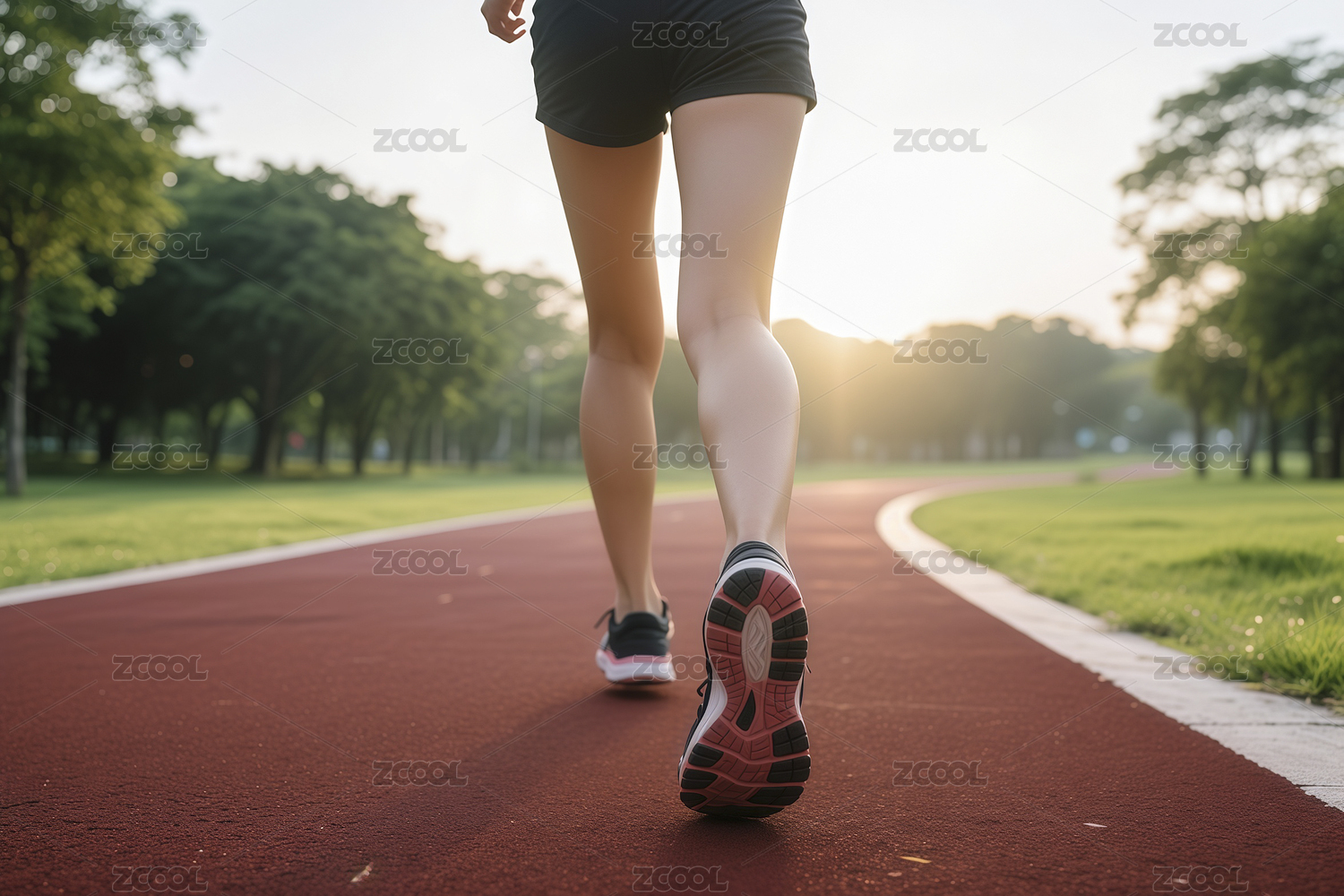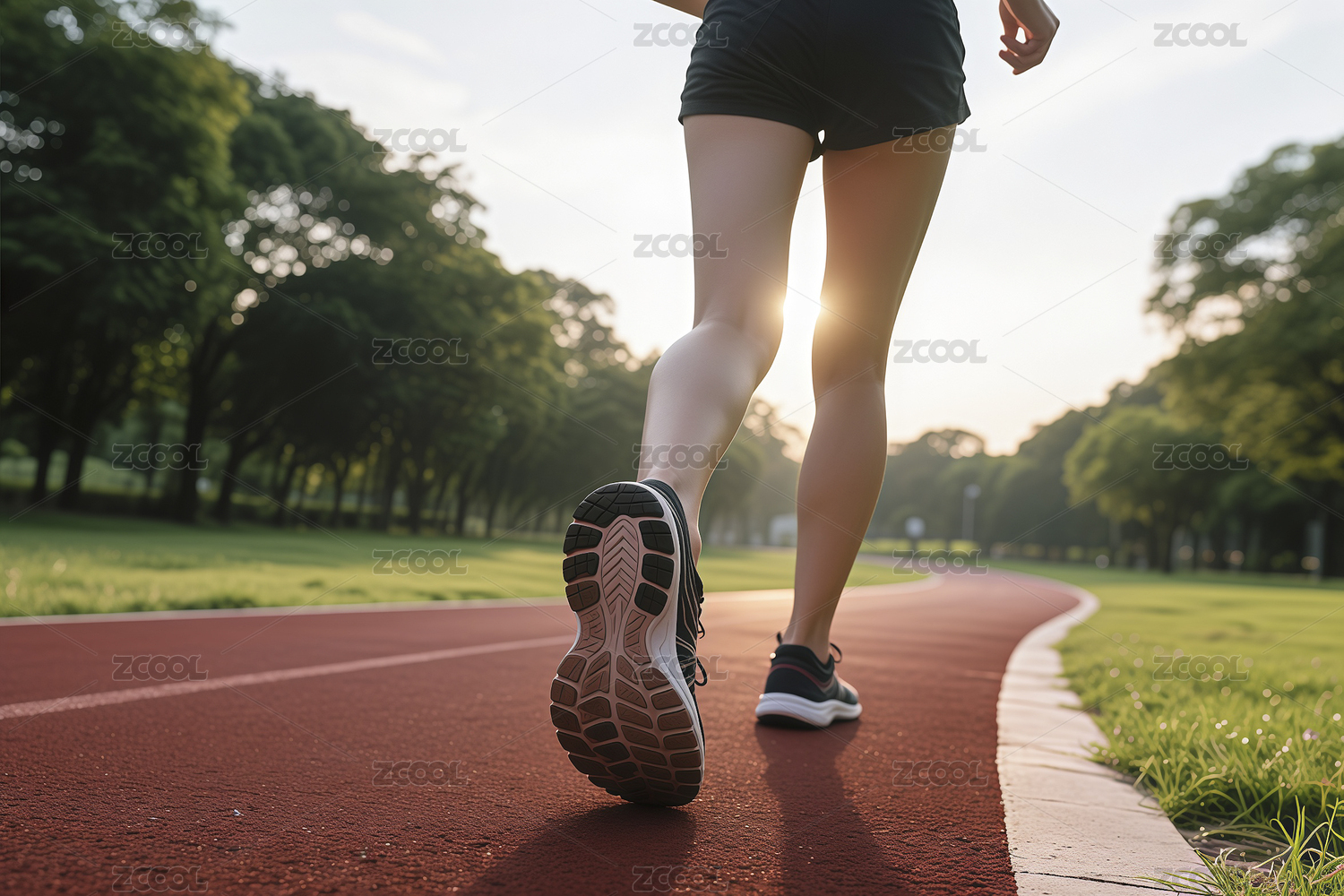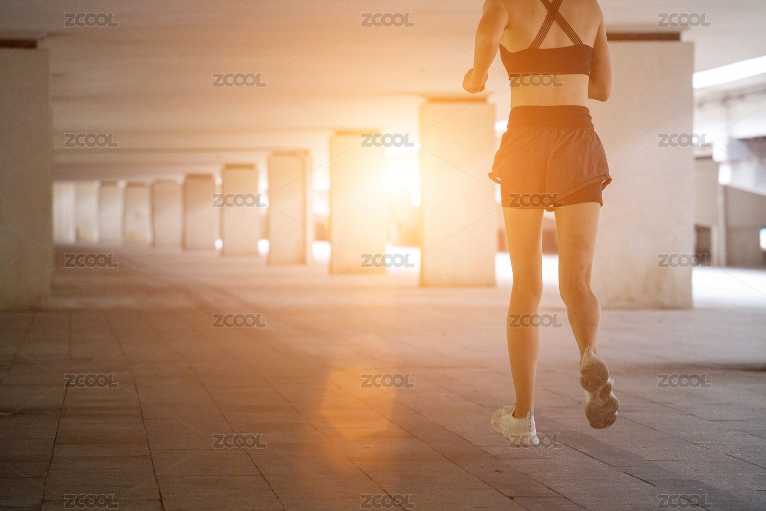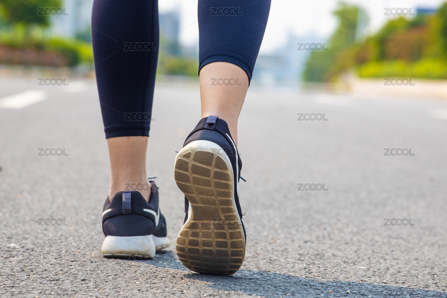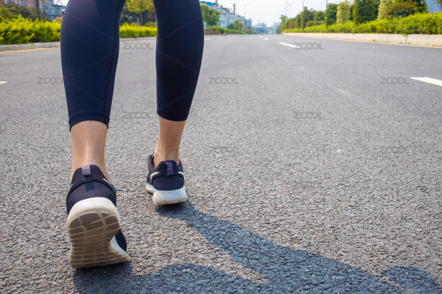 逆光跑步的步伐清晰的鞋底健美的亚洲女人腿