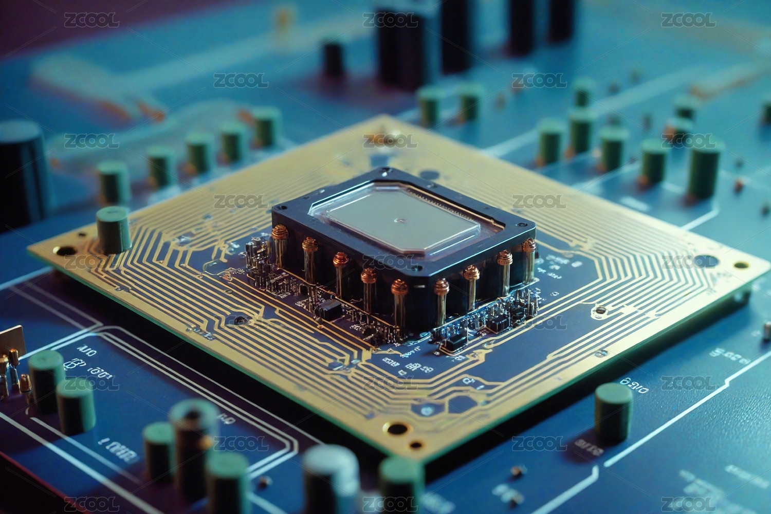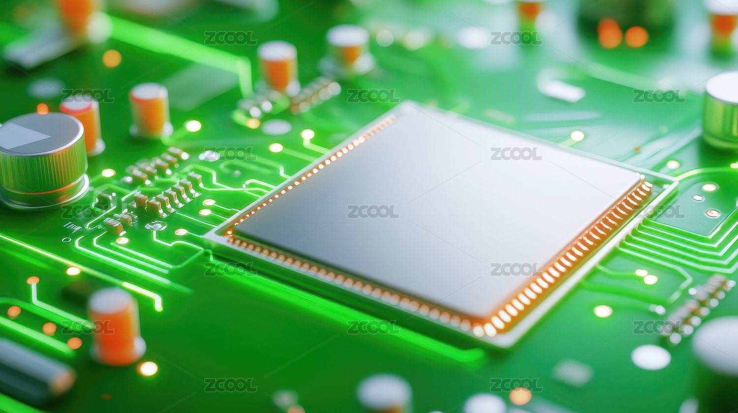 绿色电路板上的中央处理器芯片