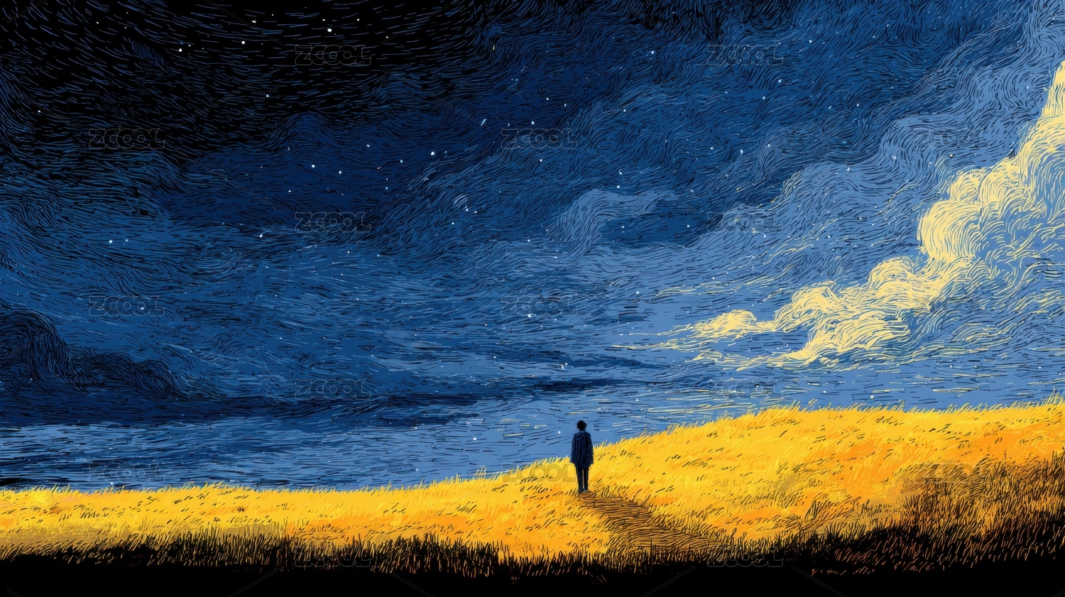夜空下的孤独旅人