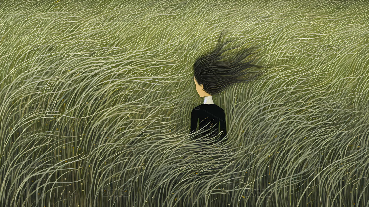 草地超现实主义插画油画装饰画背景