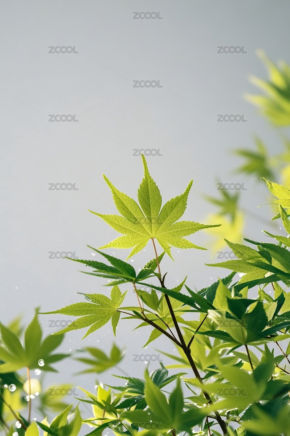 带露珠的翠绿竹叶