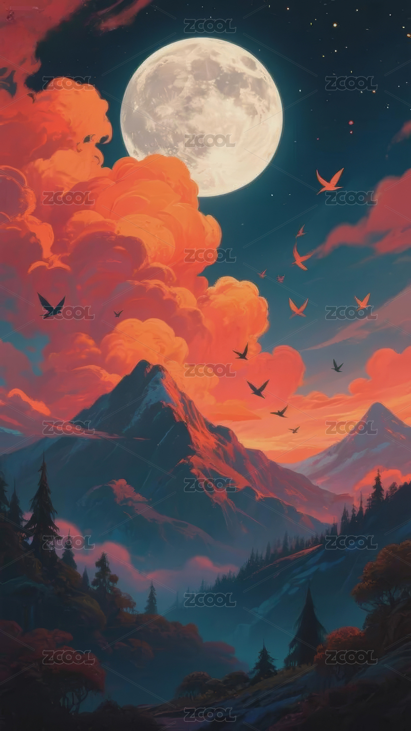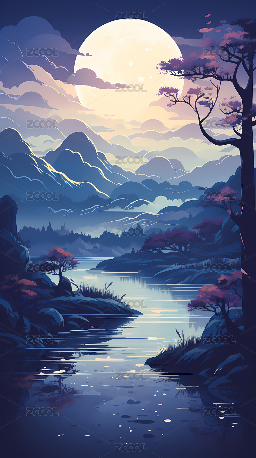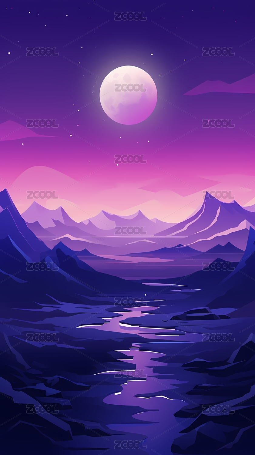 手绘唯美的抽象艺术感夜晚天空风景插画