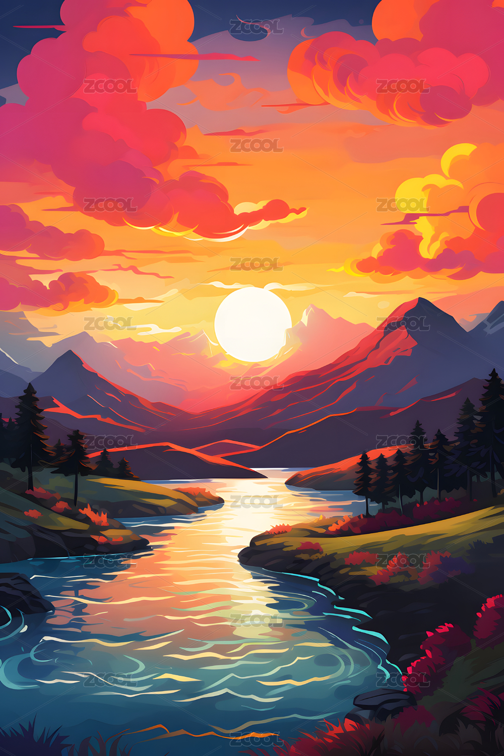 山,太阳,阳光,艺术,抽象,插画,海报,背景,户外,风景