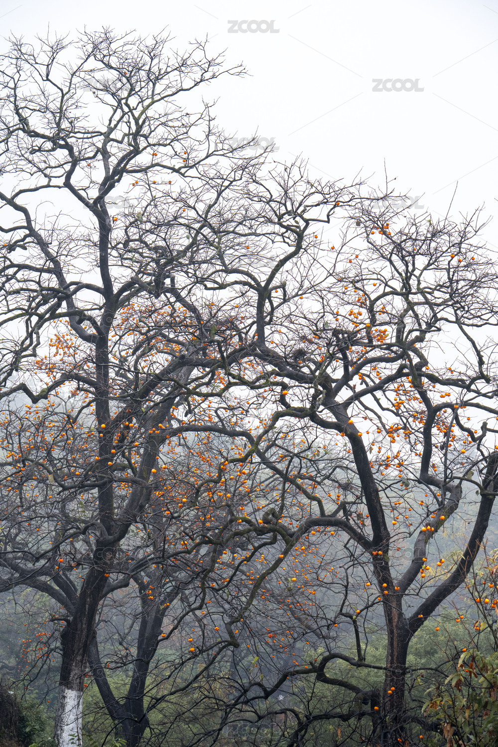 中国武汉罗田錾字石村甜柿第一村柿子树景观