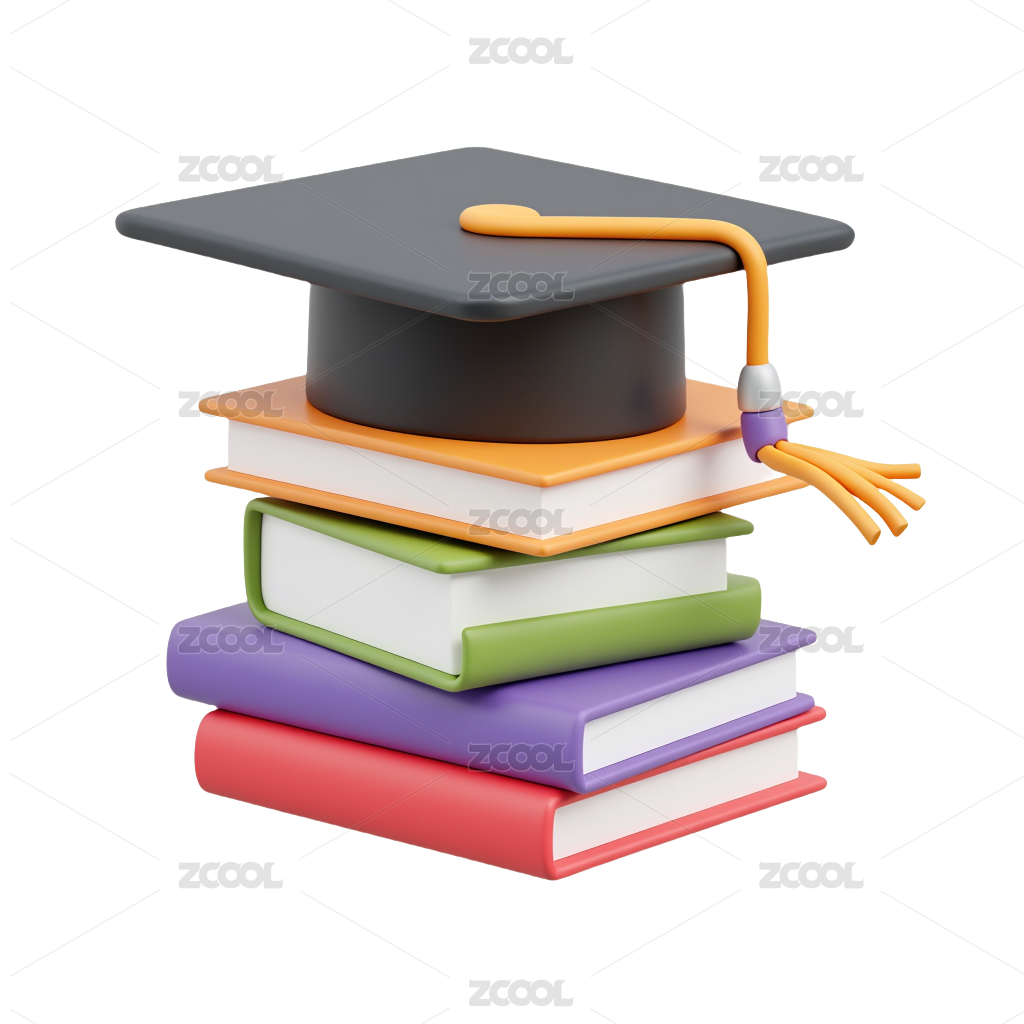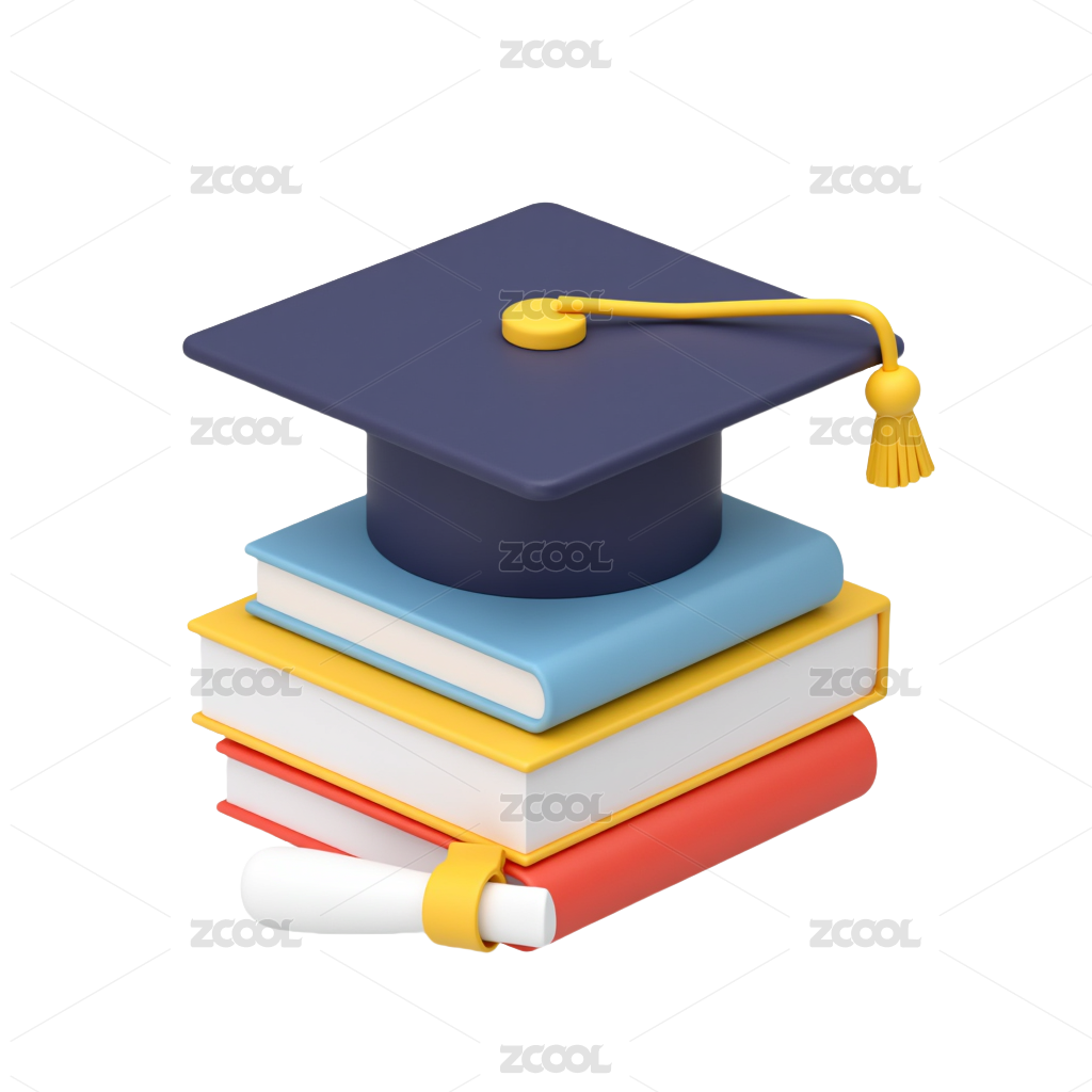 3D卡通学位帽和书本插画图标元素