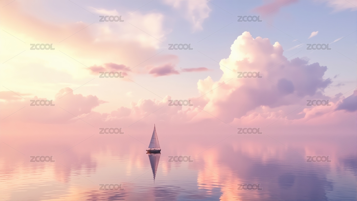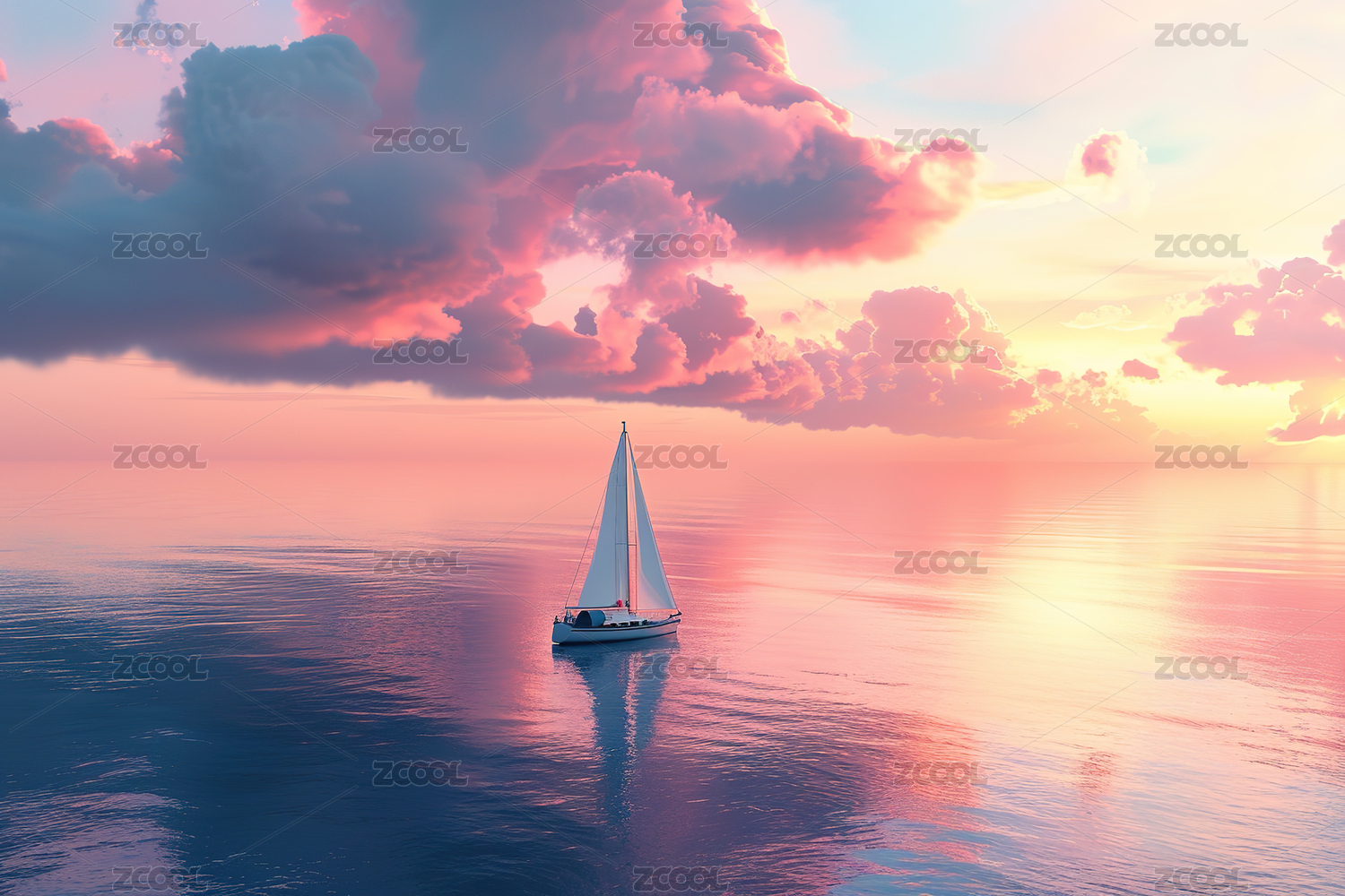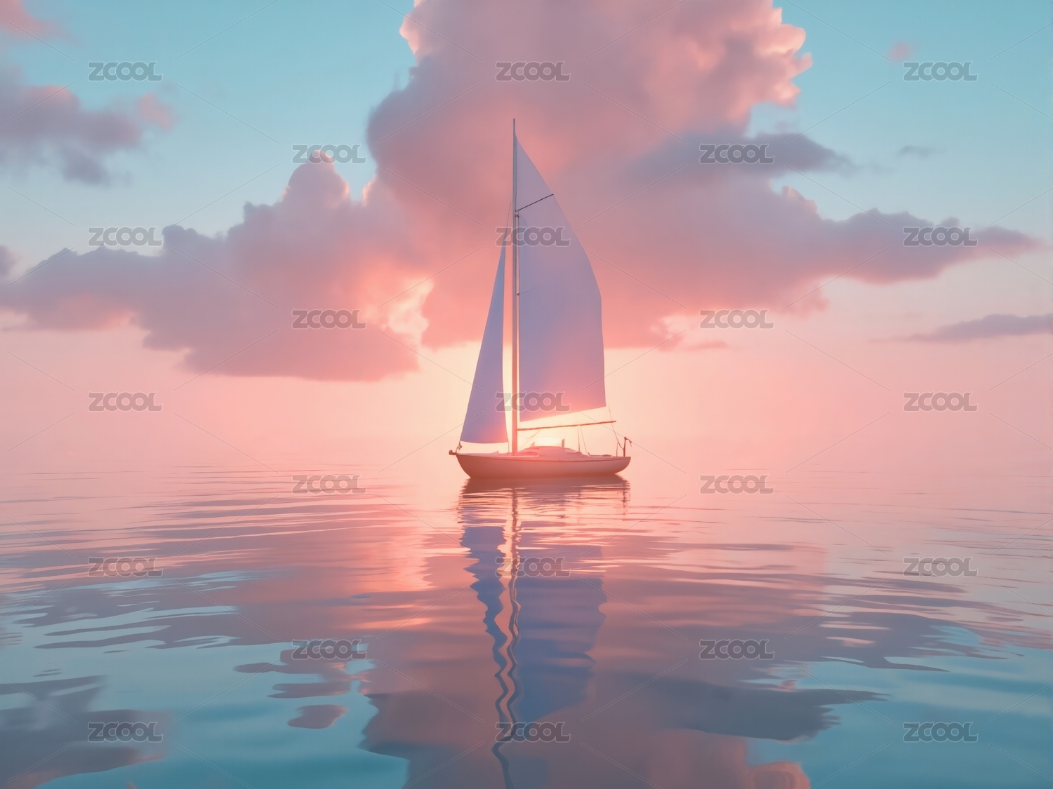 白色帆船在粉色水面上航行