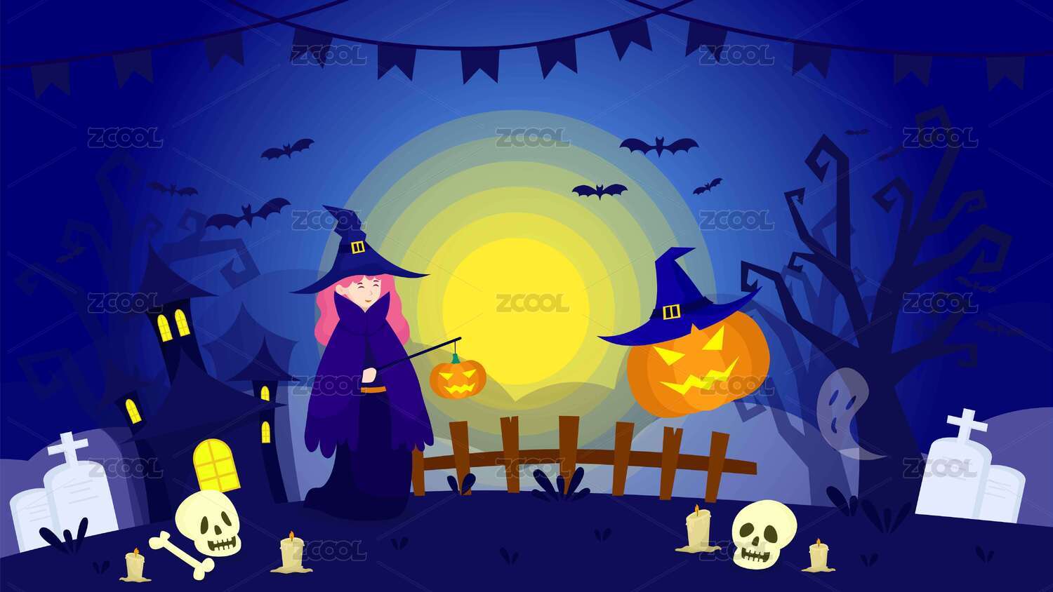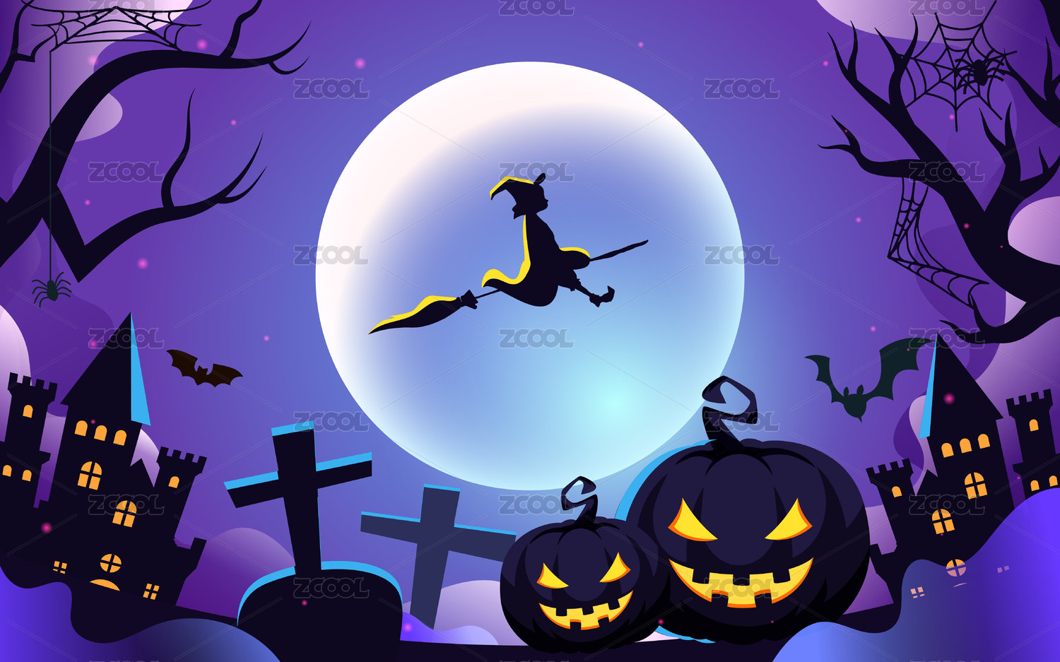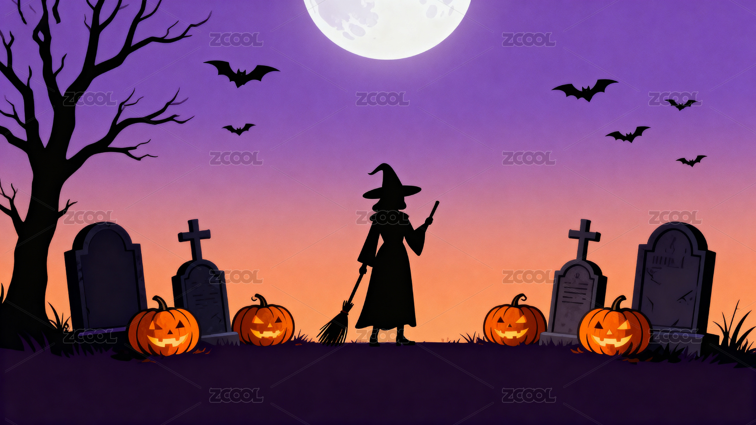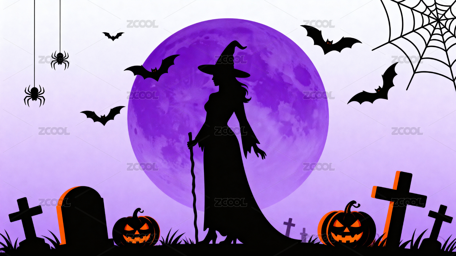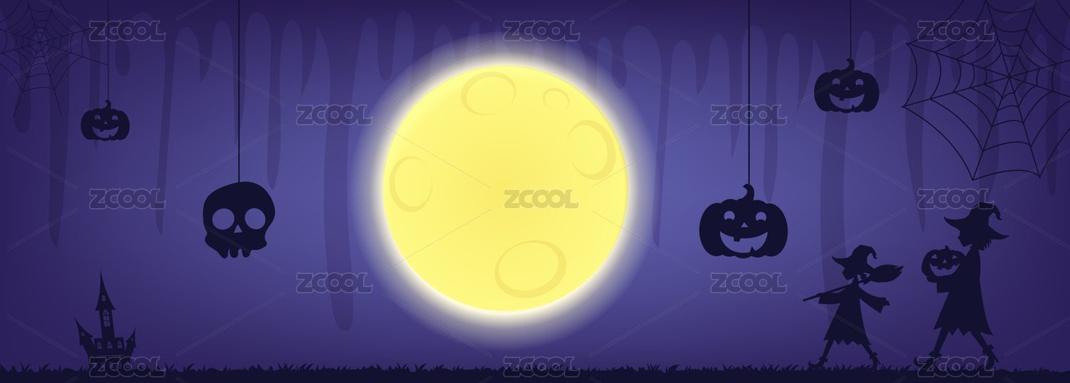 万圣节女巫与紫色月亮