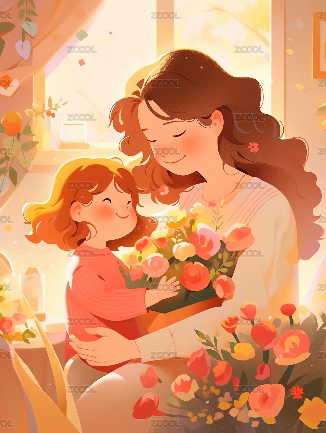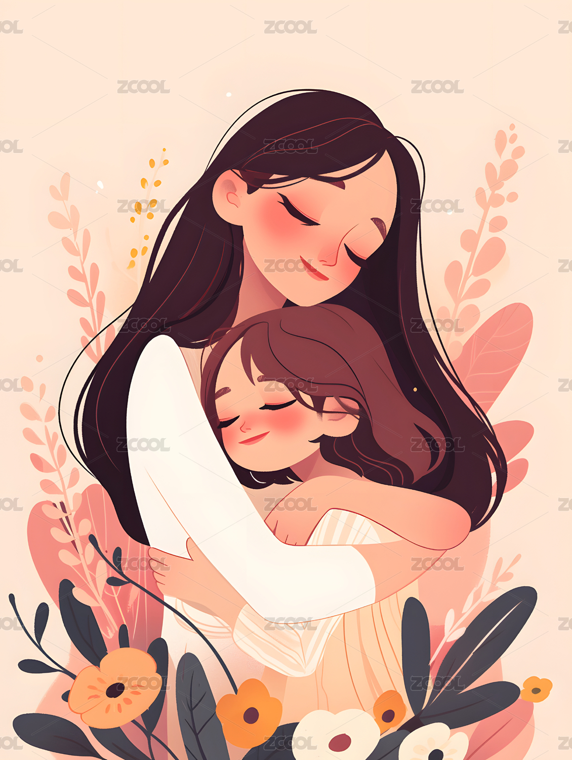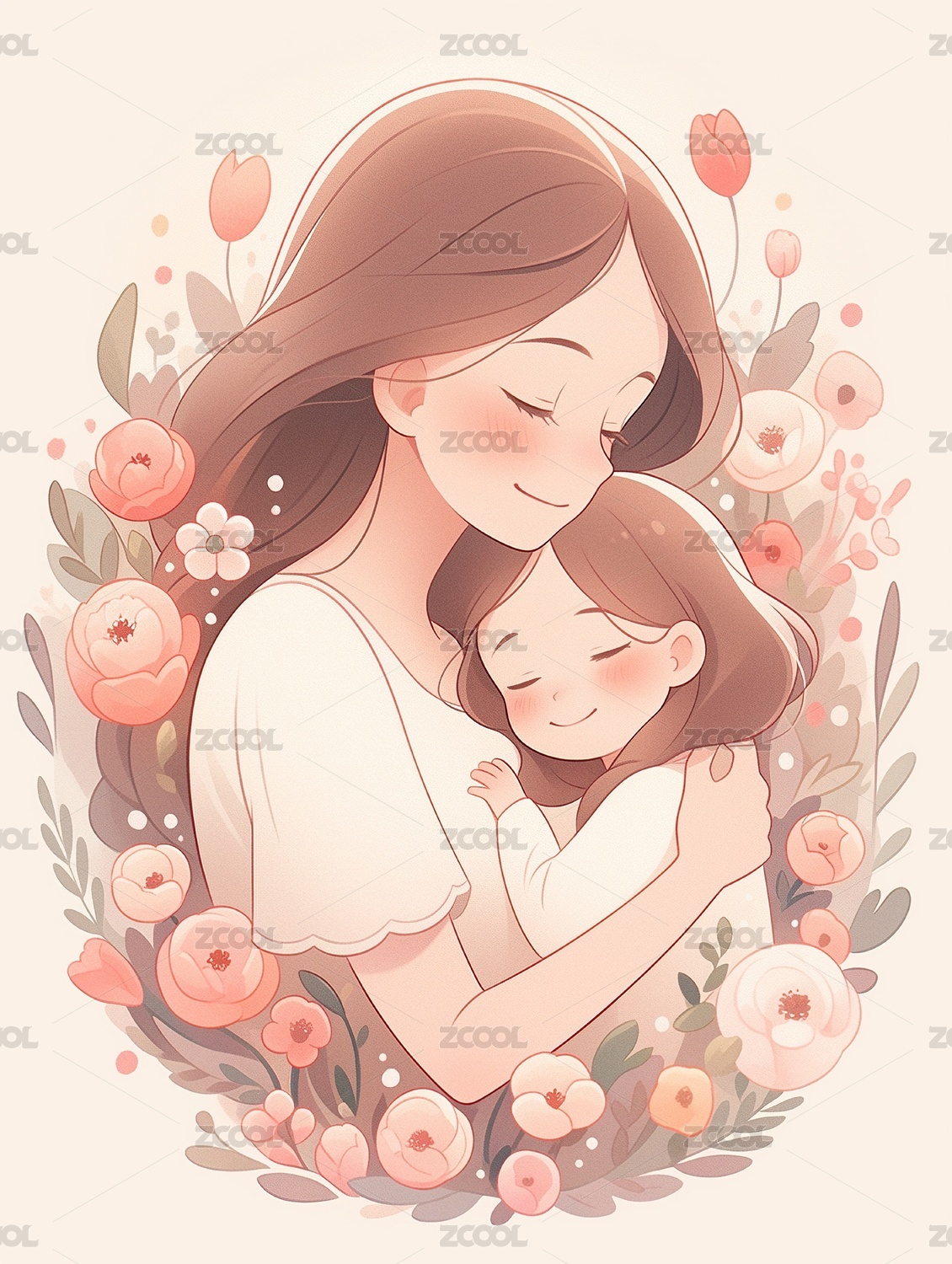 一个小女孩依偎在妈妈的怀抱中的温馨画面