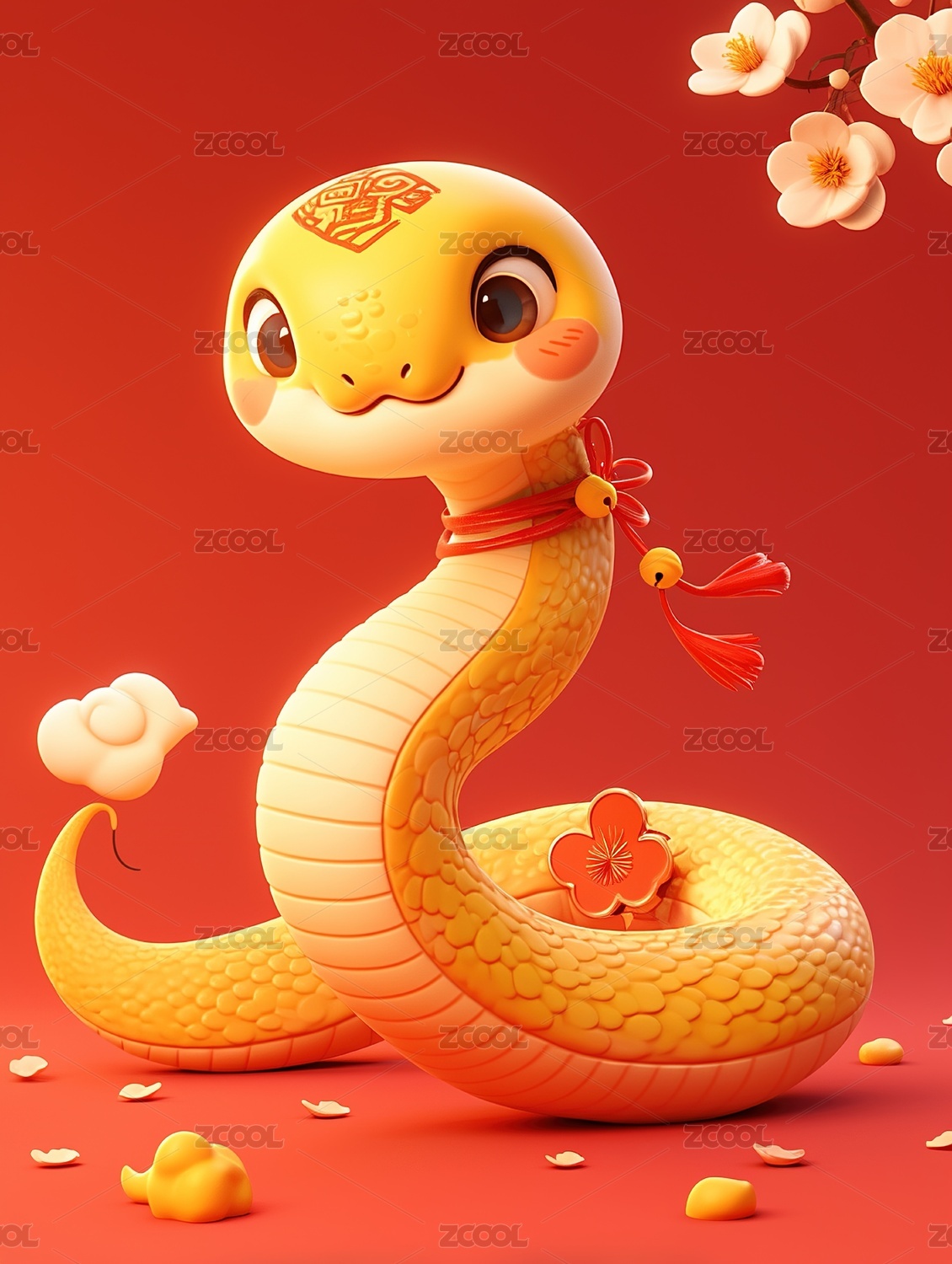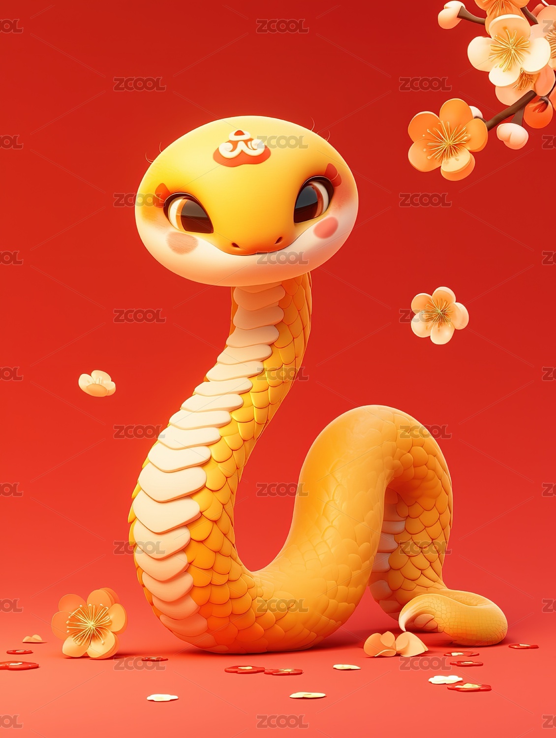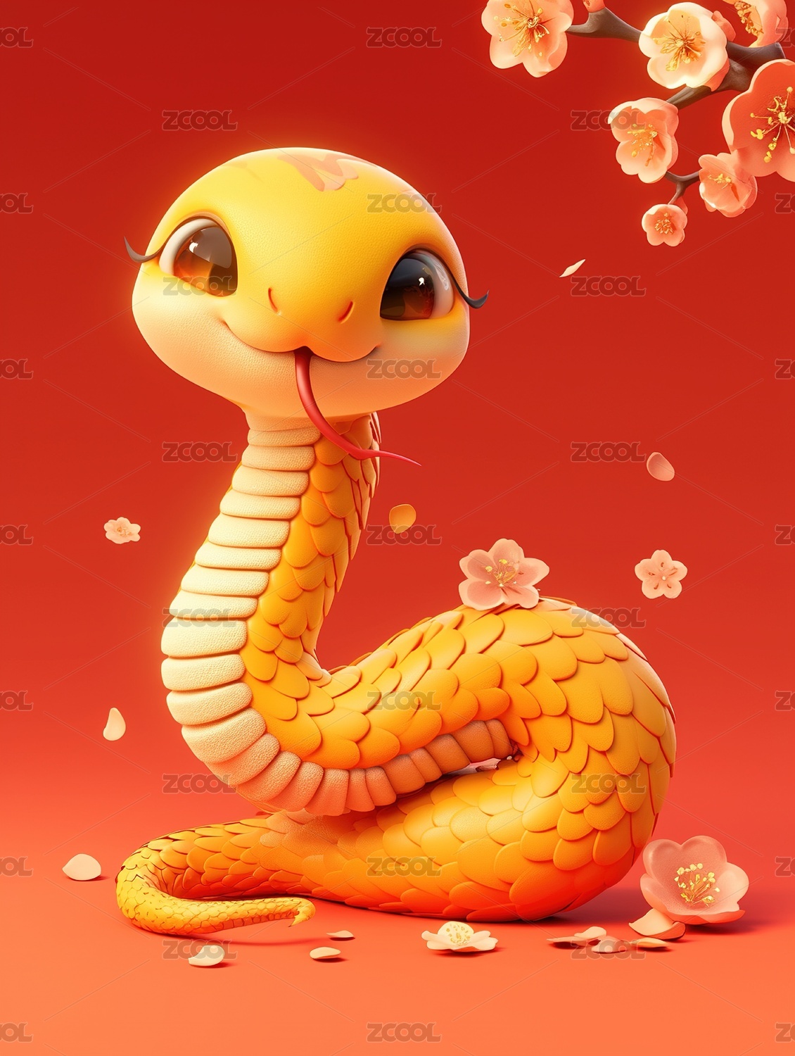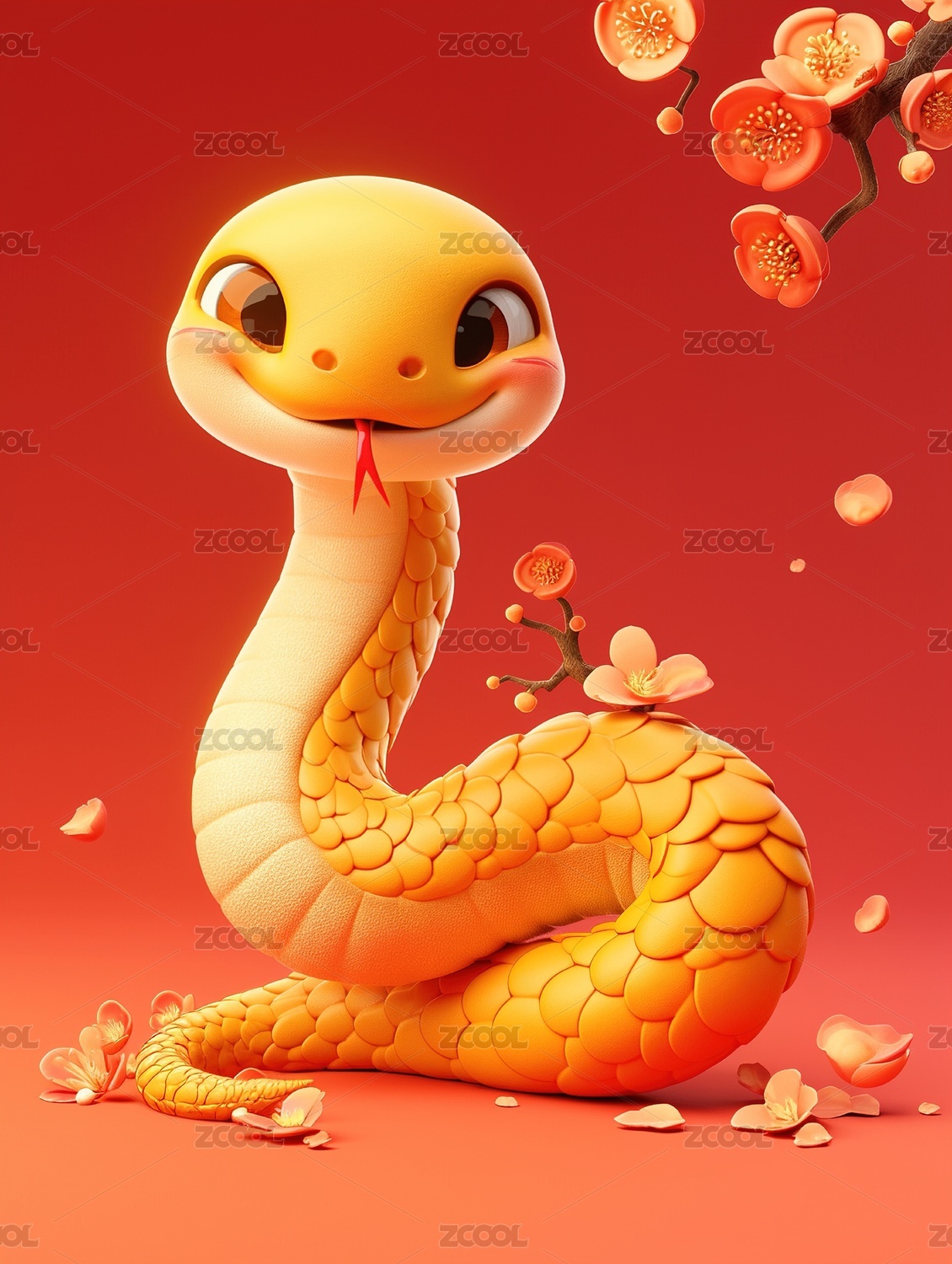 动物,可爱的,蛇,新年,春节,插画,蛇年,三维,3D