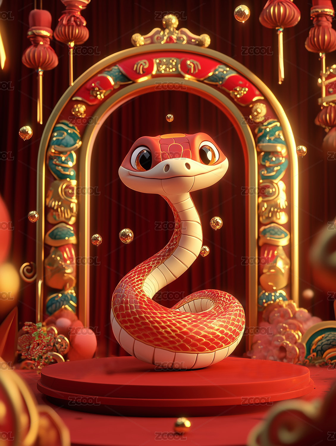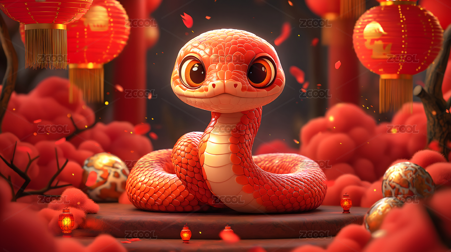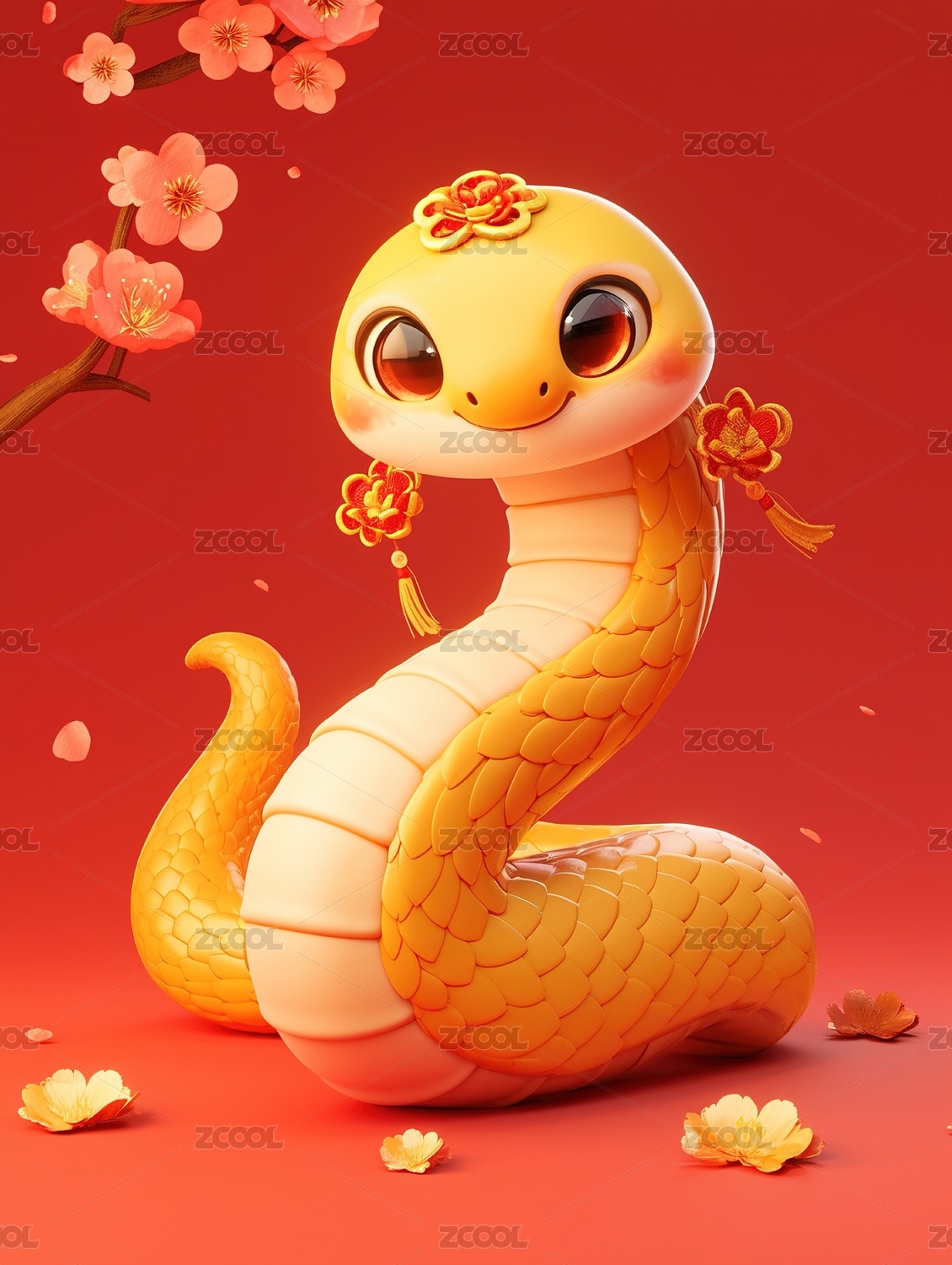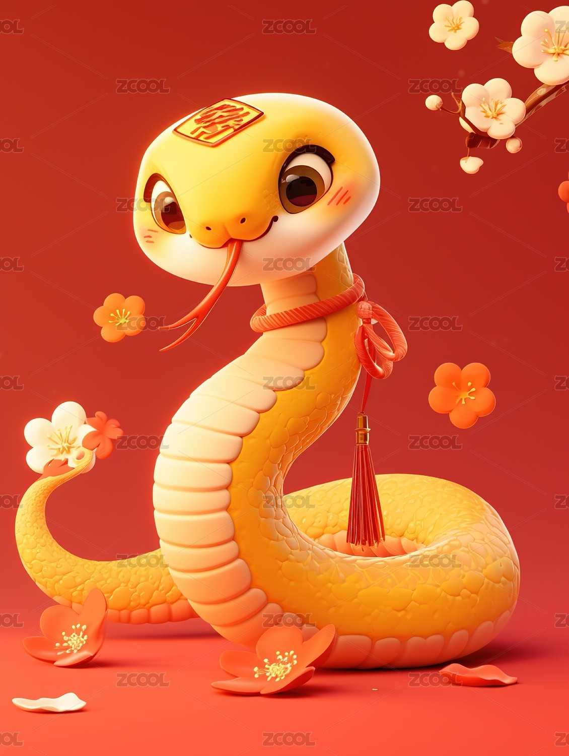 动物,可爱的,蛇,新年,春节,插画,蛇年,三维,3D
