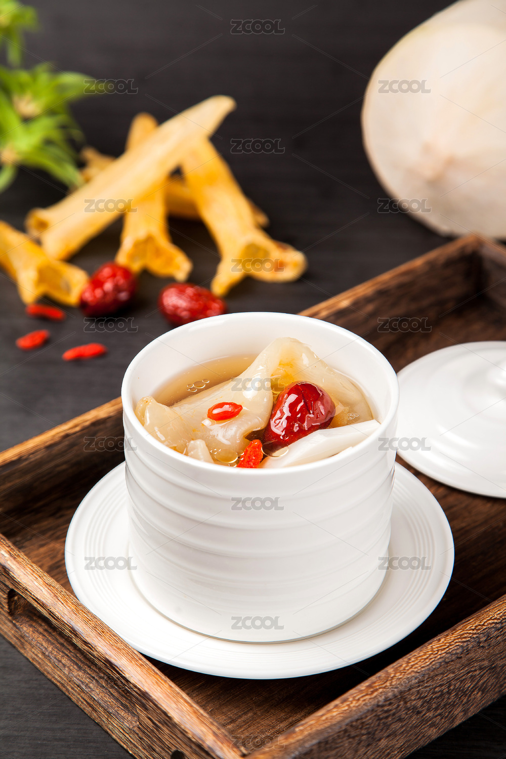 黑色背景一碗养生冰糖雪梨糖水