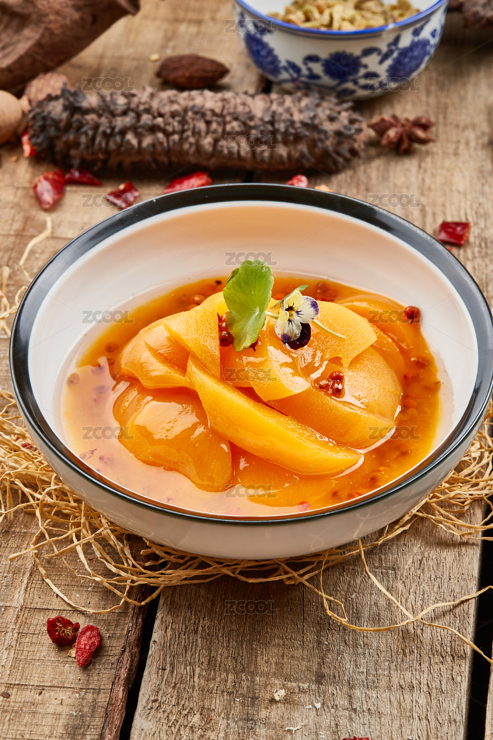 桌面上的碗里的美味可口的冰糖炖雪梨