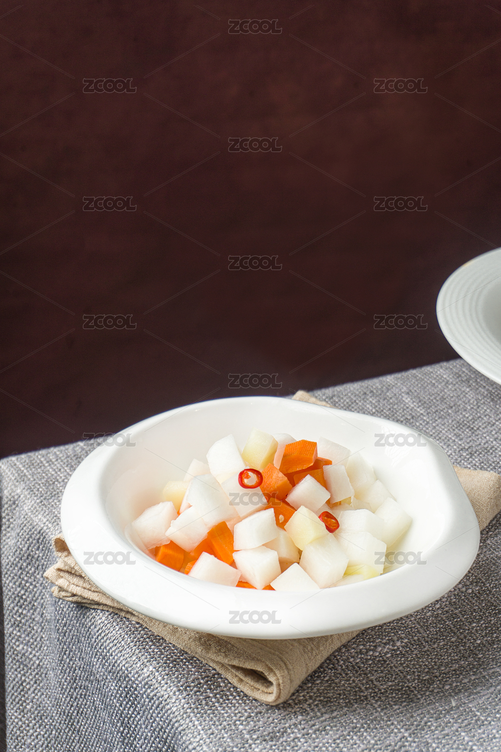白盘子里的泡椒白萝卜