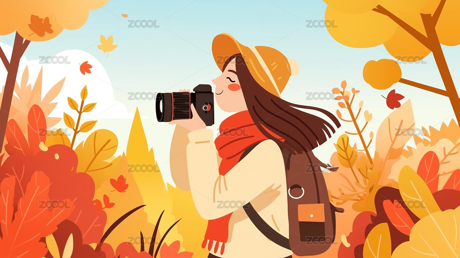 秋天秋游立秋秋分户外活动运动卡通漫画插画