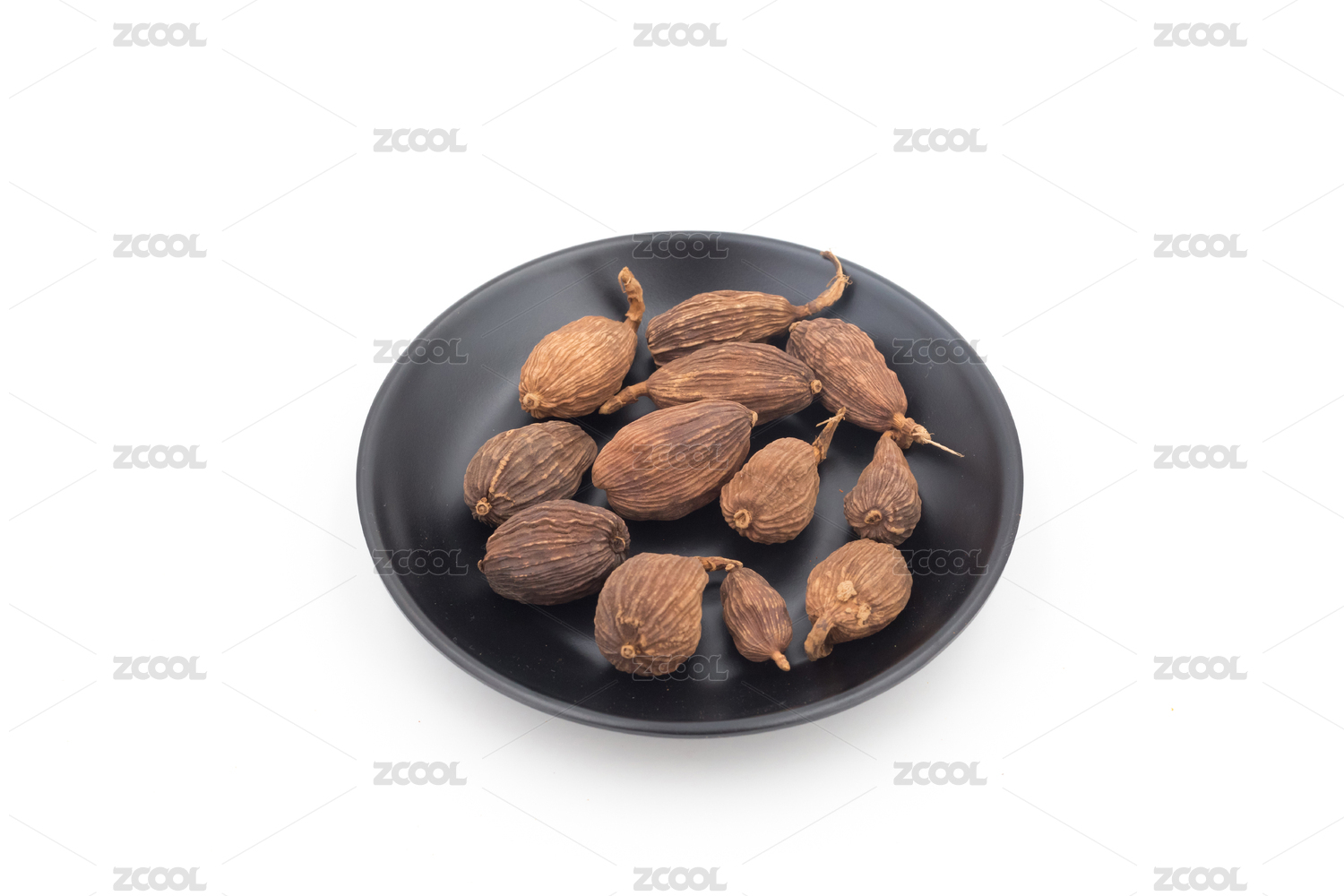 一盘草果在白色背景,调料