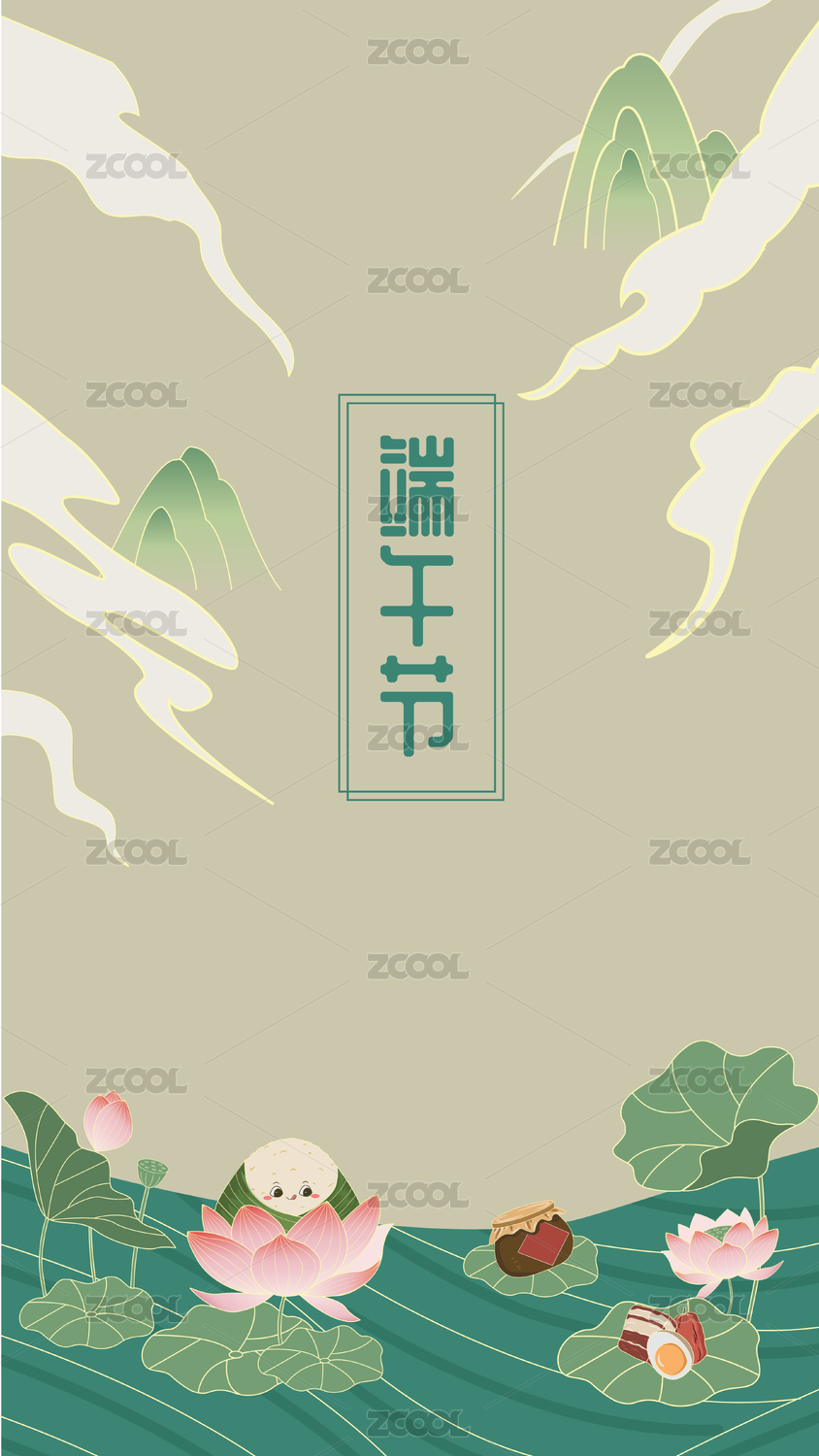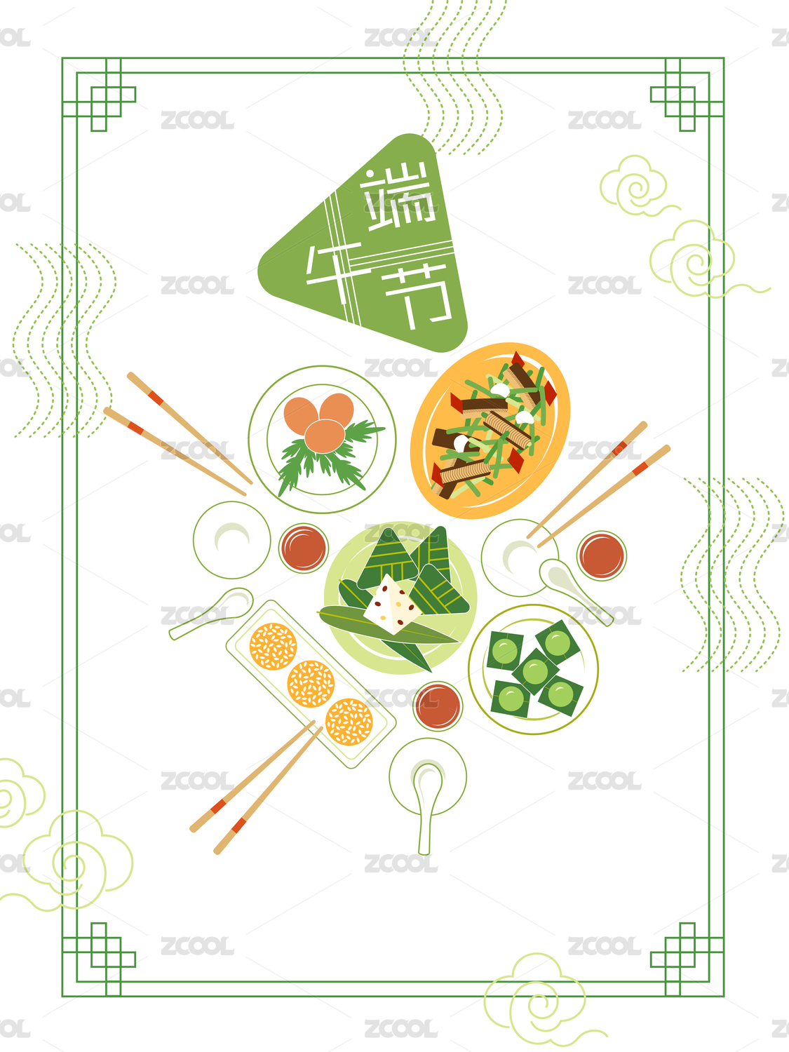 端午节美食插画 粽子 原麻 黄鳝 卤蛋 青团