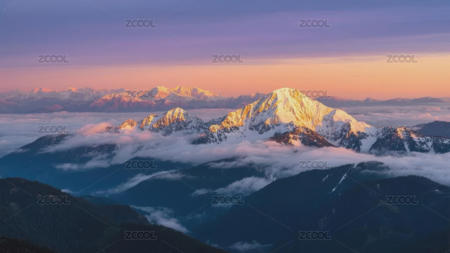 中国四川省甘孜州华尖山眺望贡嘎山日出