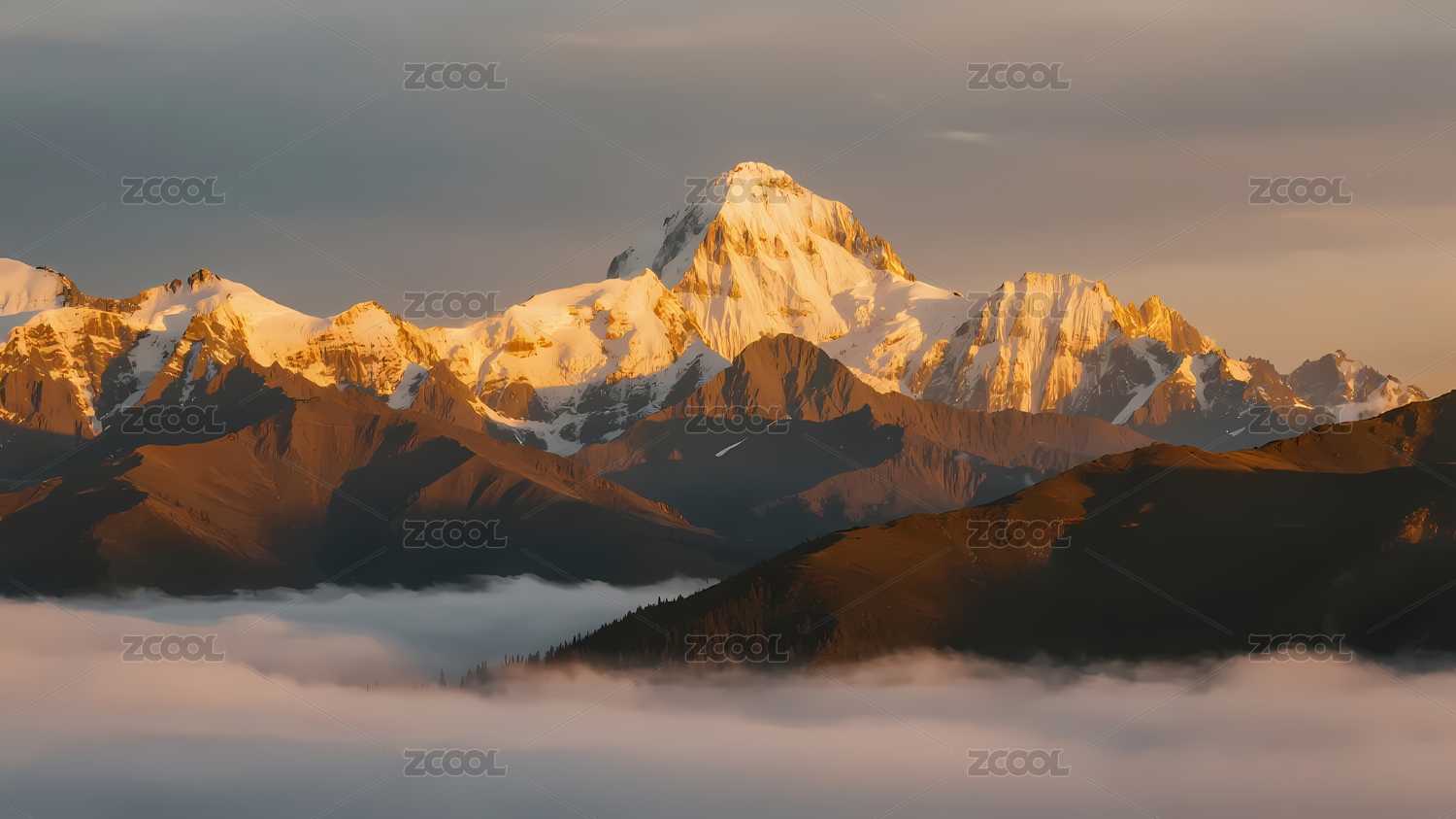 中国西藏喜马拉雅山脉珠穆朗玛峰日照金山
