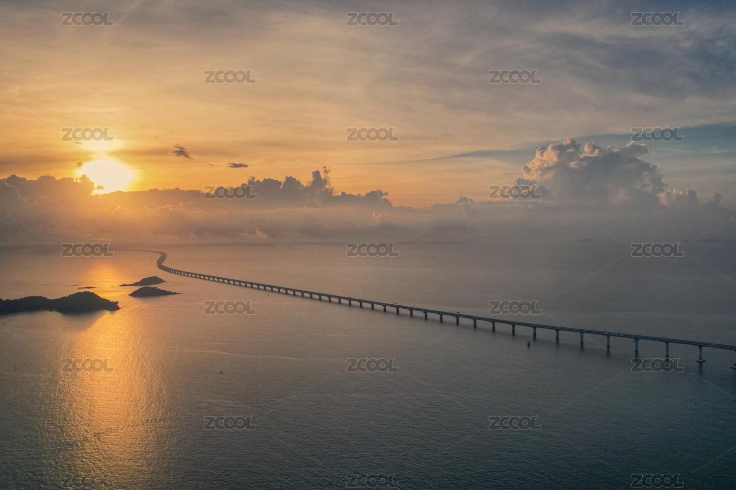 中国浙江省杭州市钱塘江大桥日出云海航拍