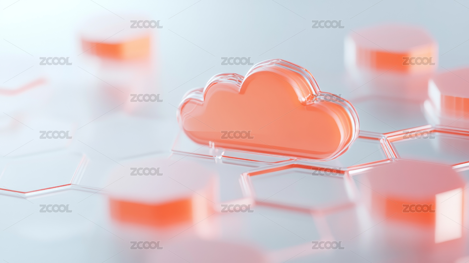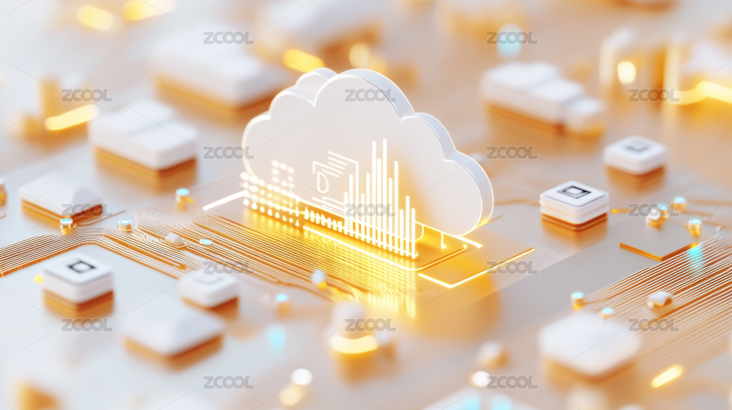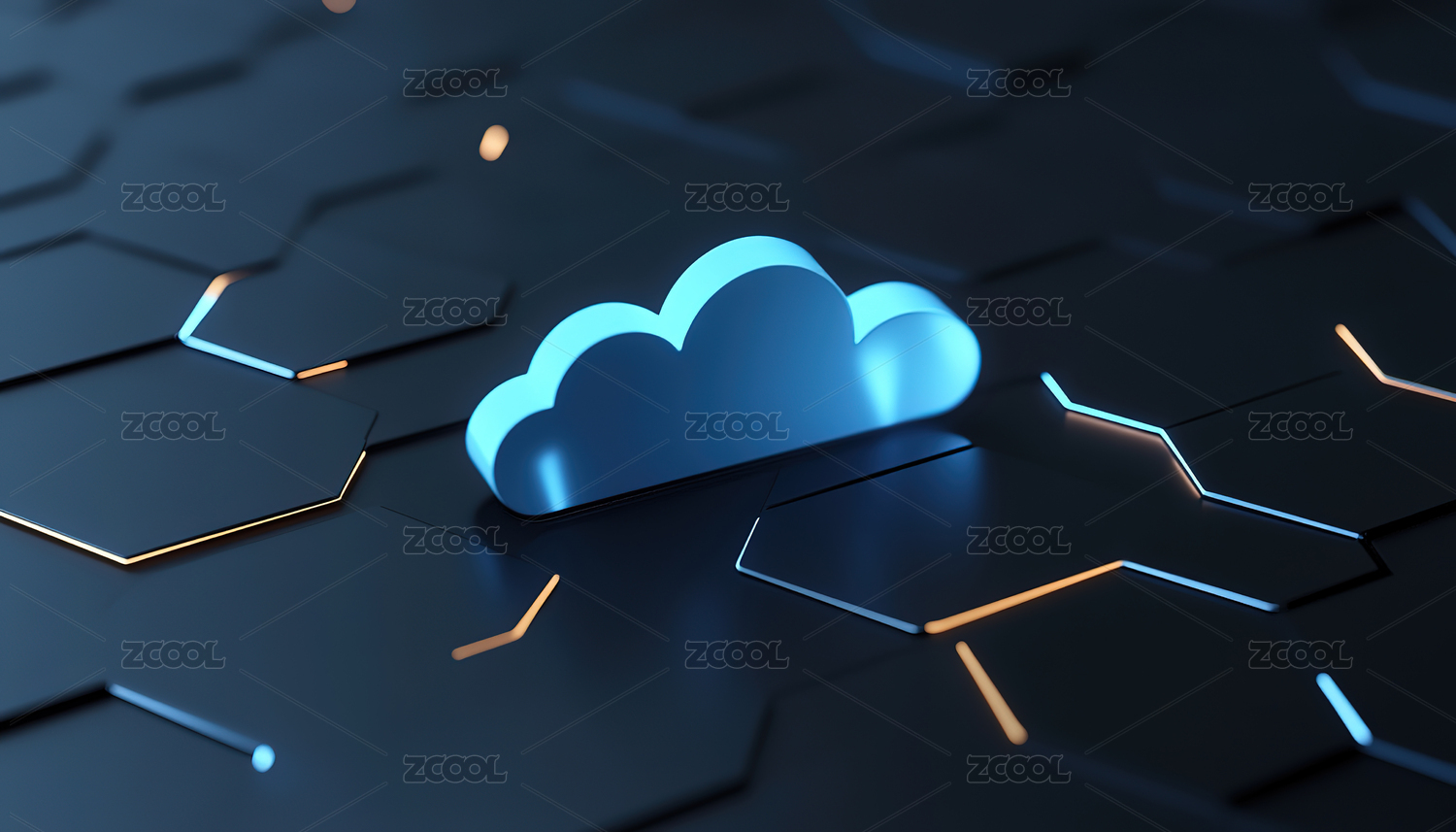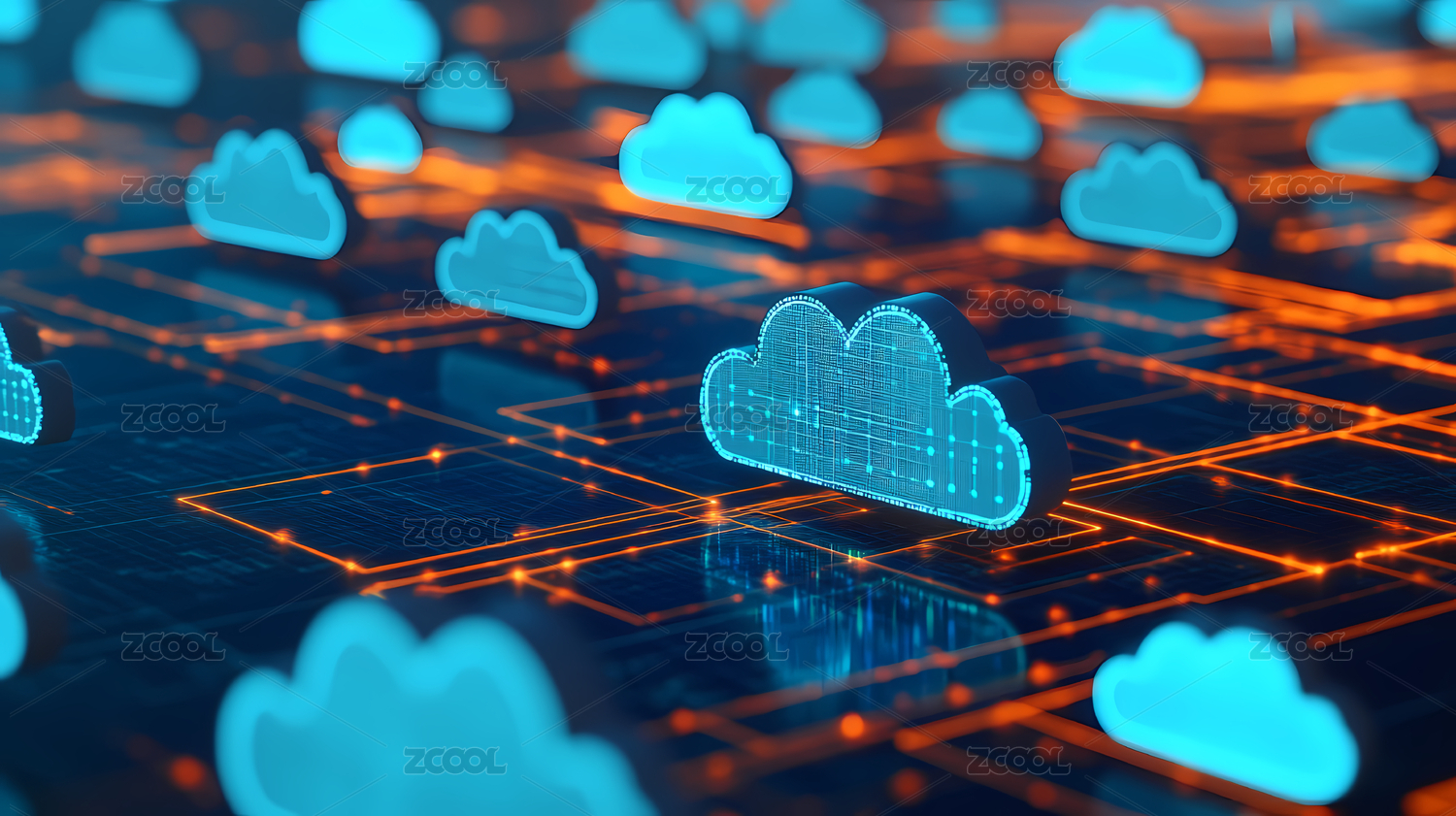 科技感的云端图标置于网络背景