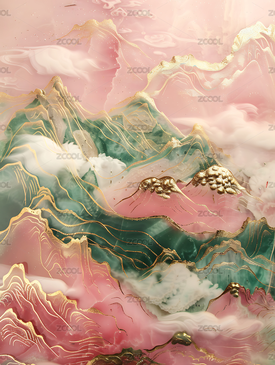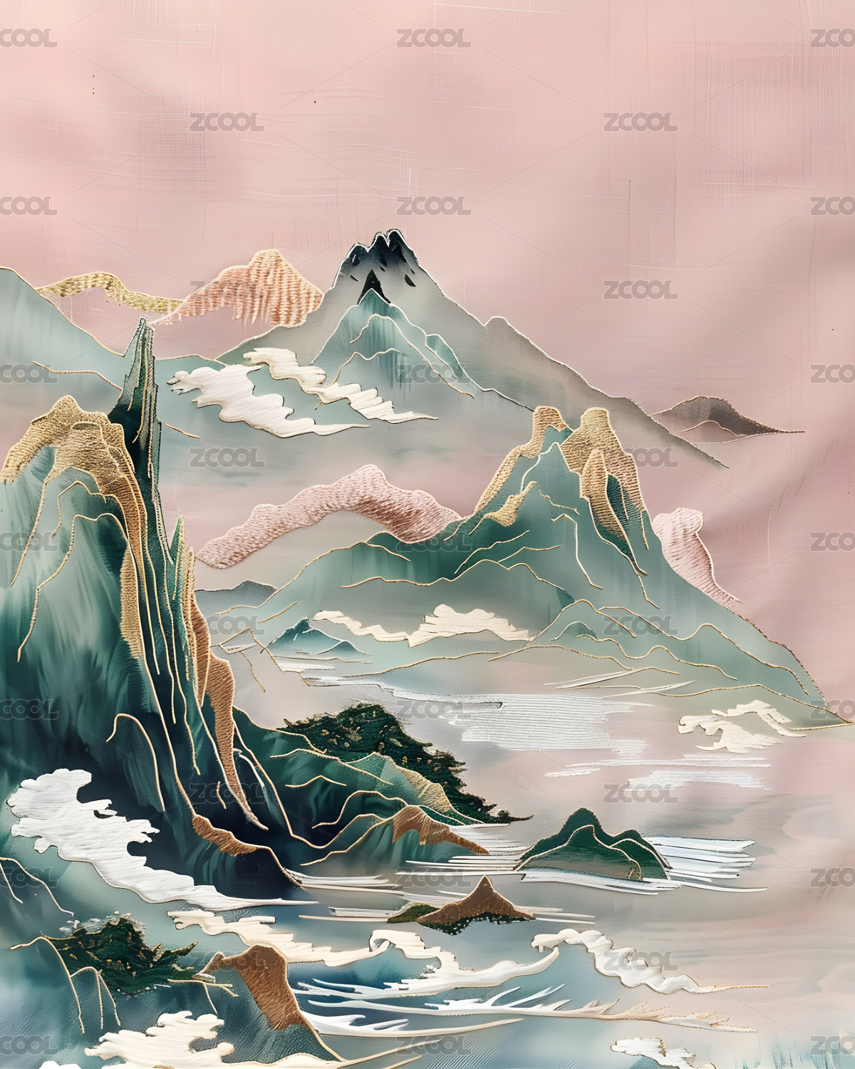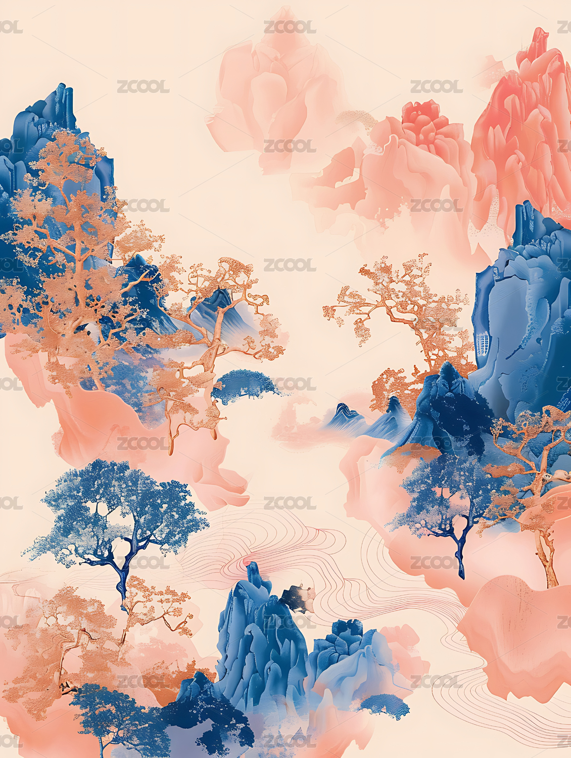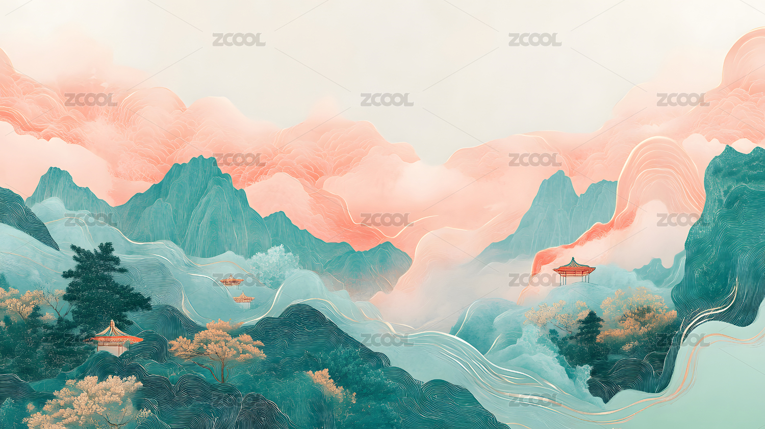 新中式,国风,山水,壁画,3d,梦幻,鎏金,超现实,水彩,水粉