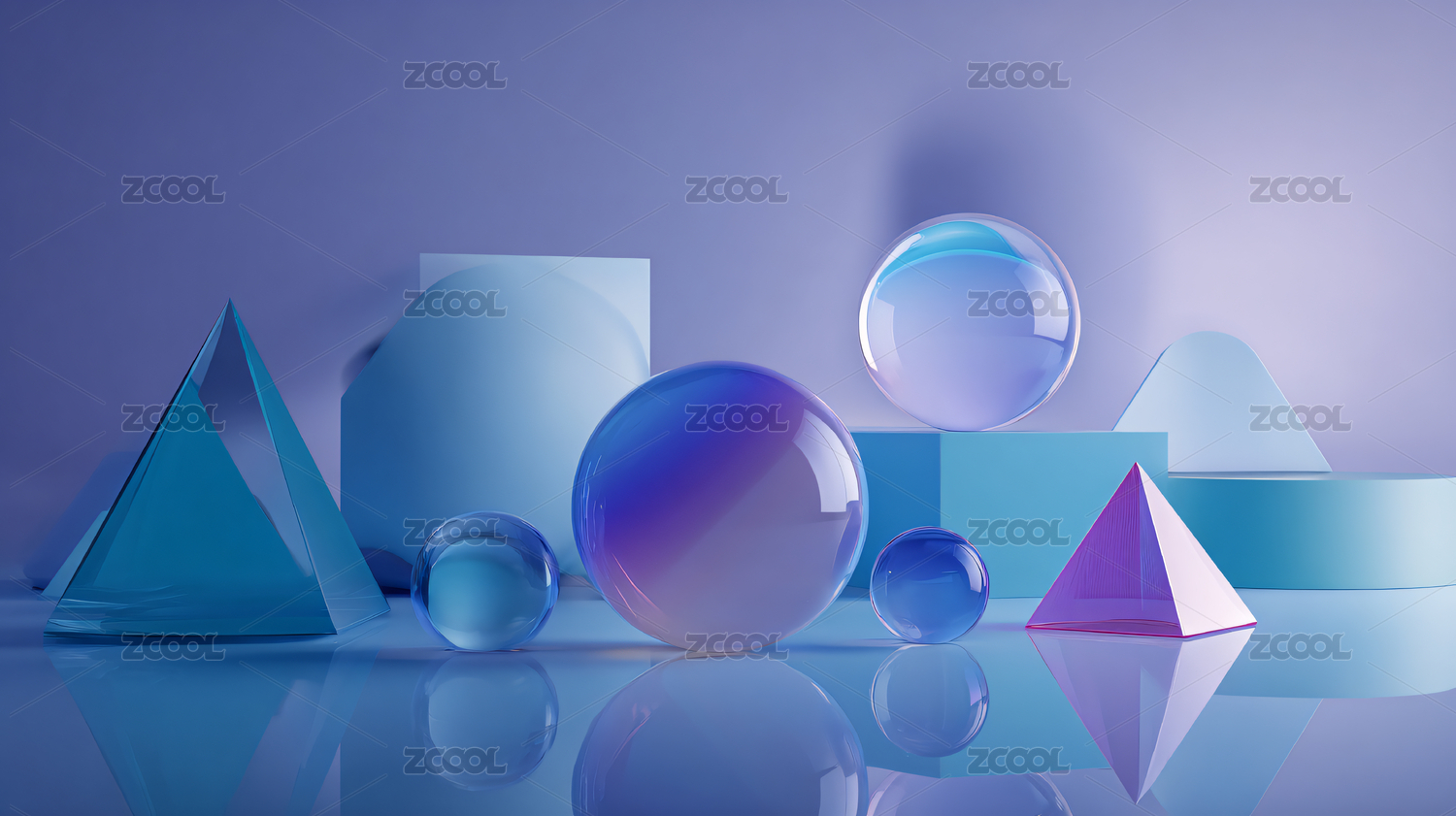 现代,透明,艺术,色彩,背景,光影,几何,形状,球体,立方体