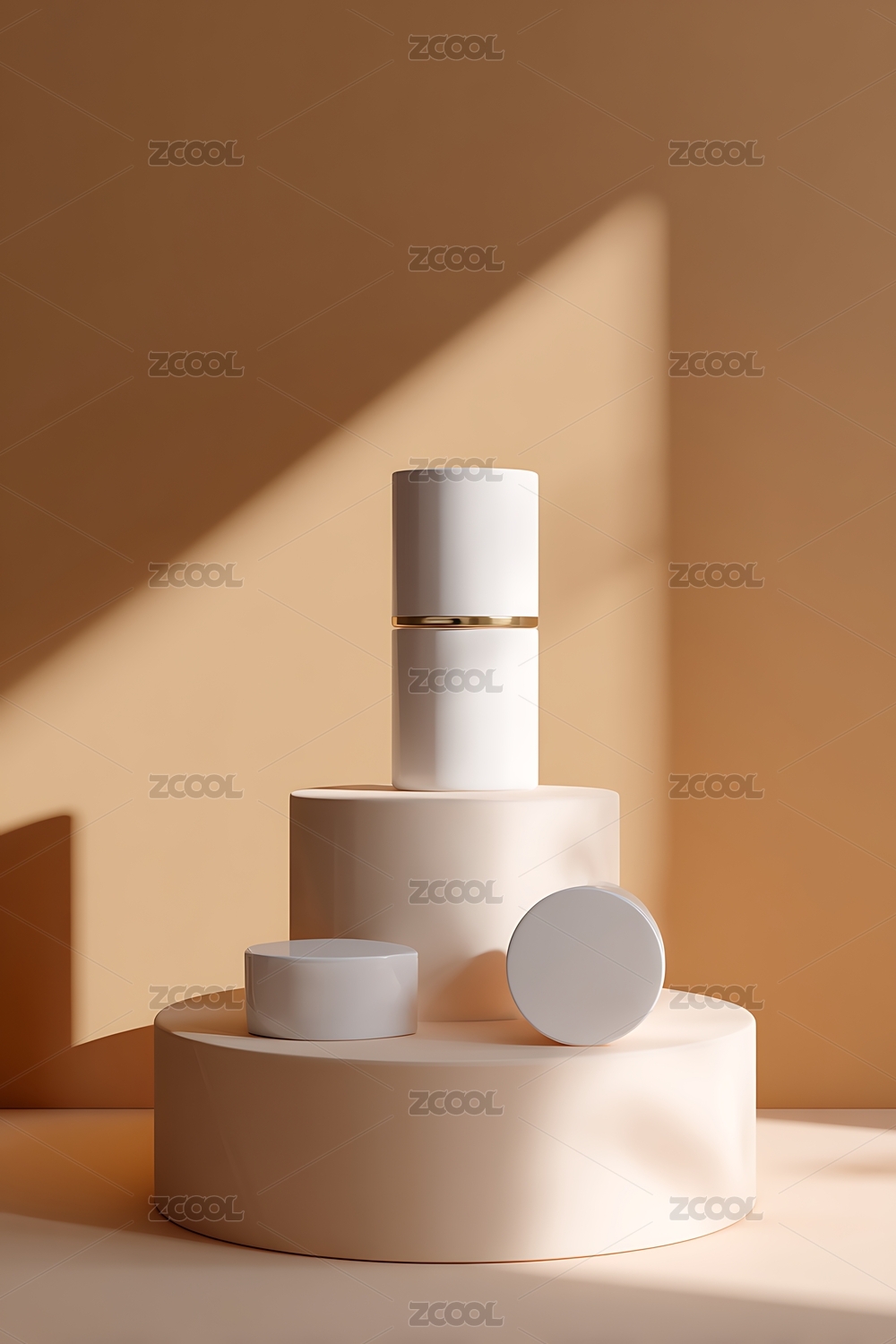 时尚,光影效果,简约风格,展示台,现代设计,几何形状,优雅,化妆品,瓶装,大理石