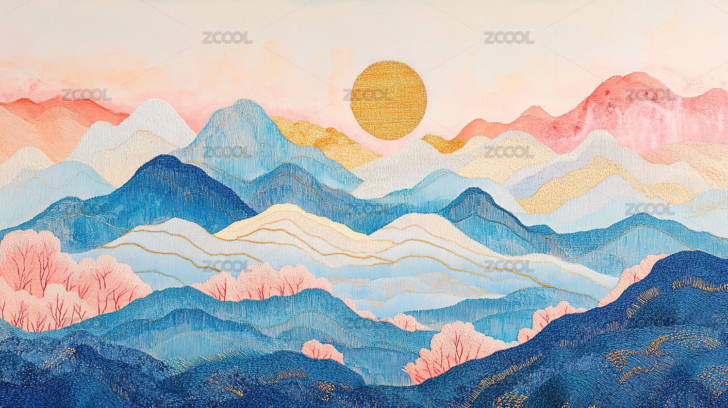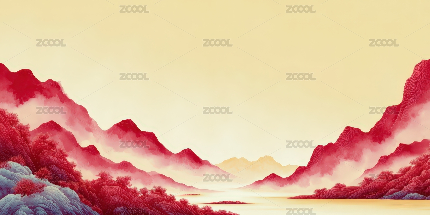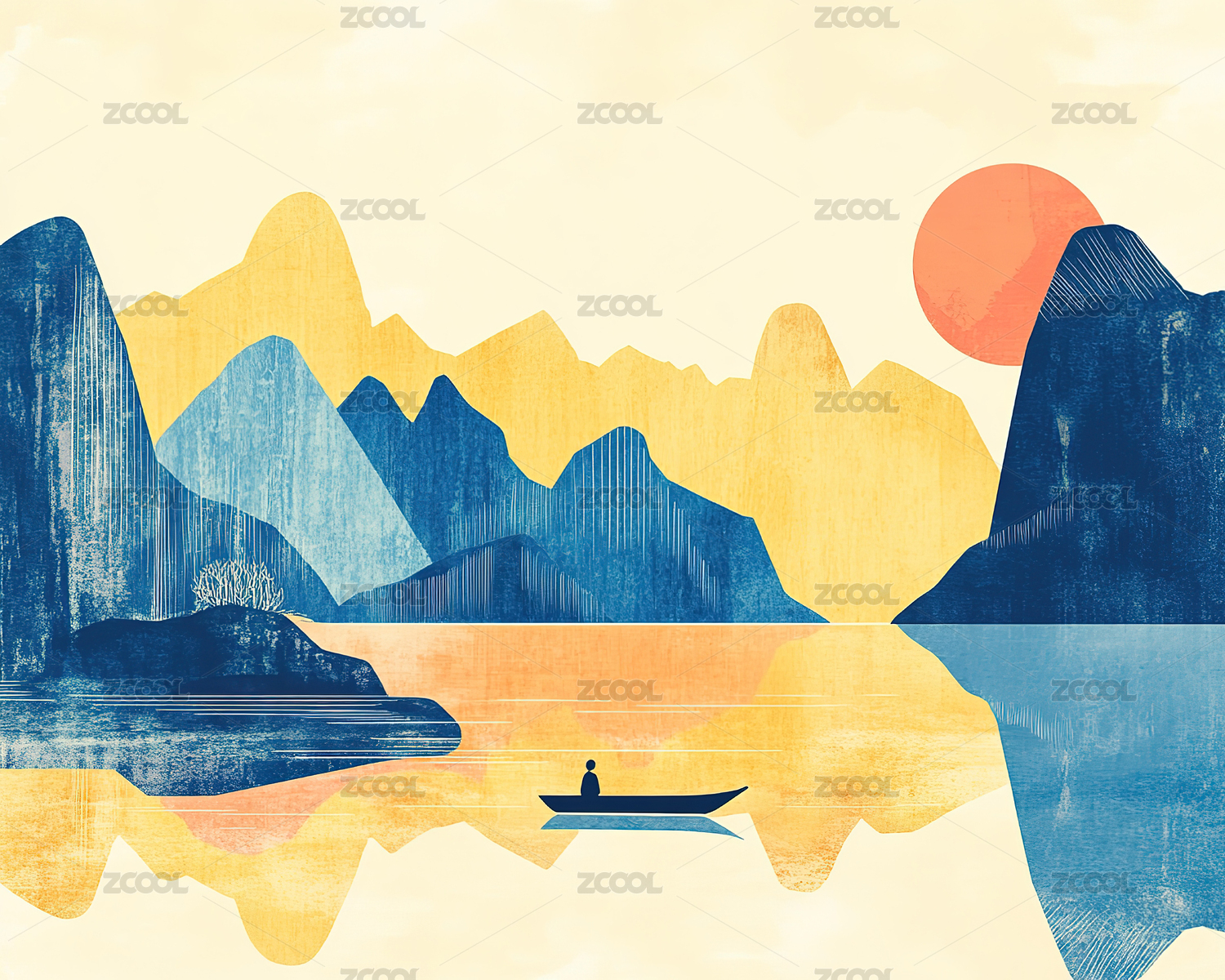 国风,插画,山水,水墨,扁平,国潮风,中式,传统,新中式,中国