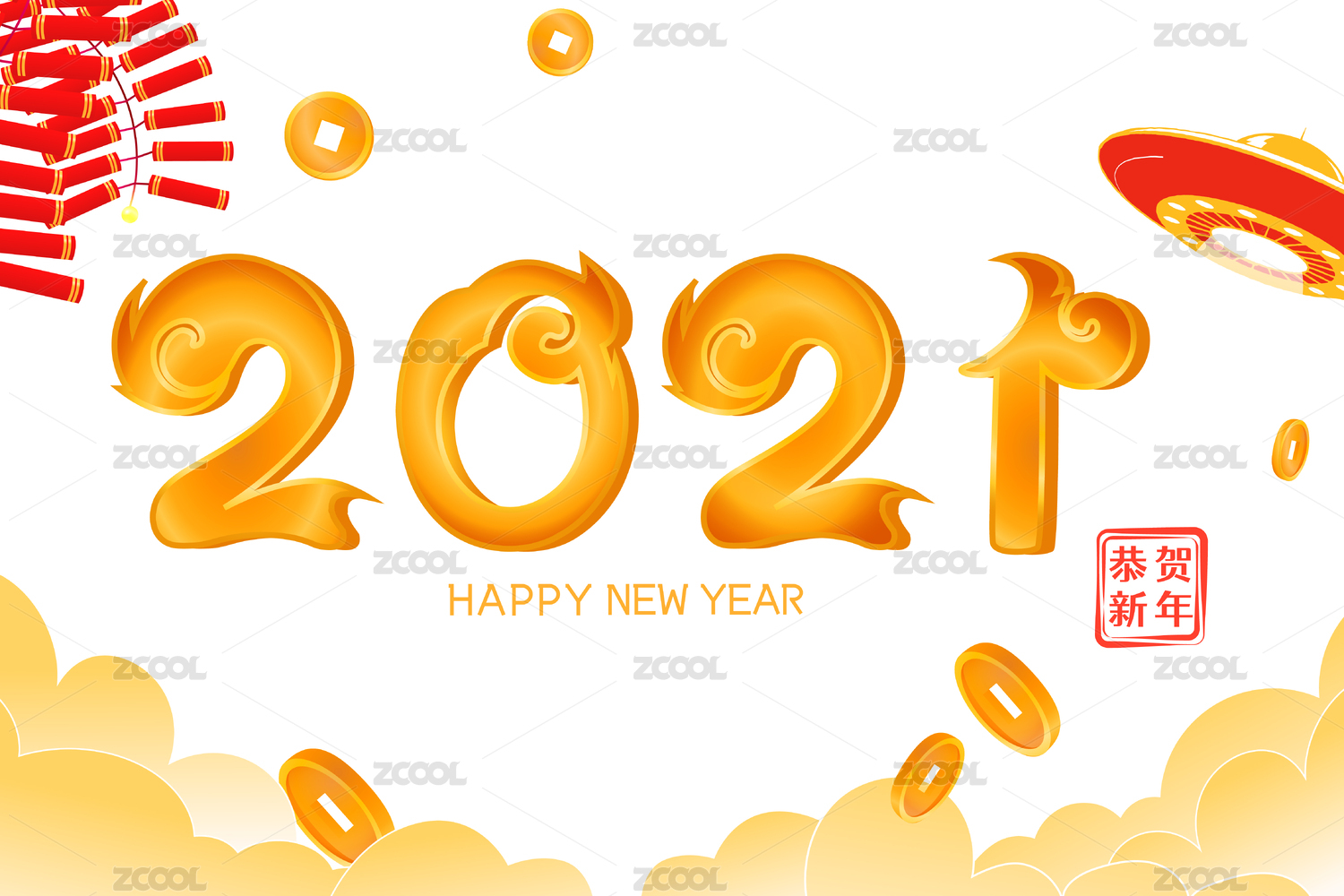 2021,牛年,字体,设计,新年,除夕,元旦,快乐,立体,3D