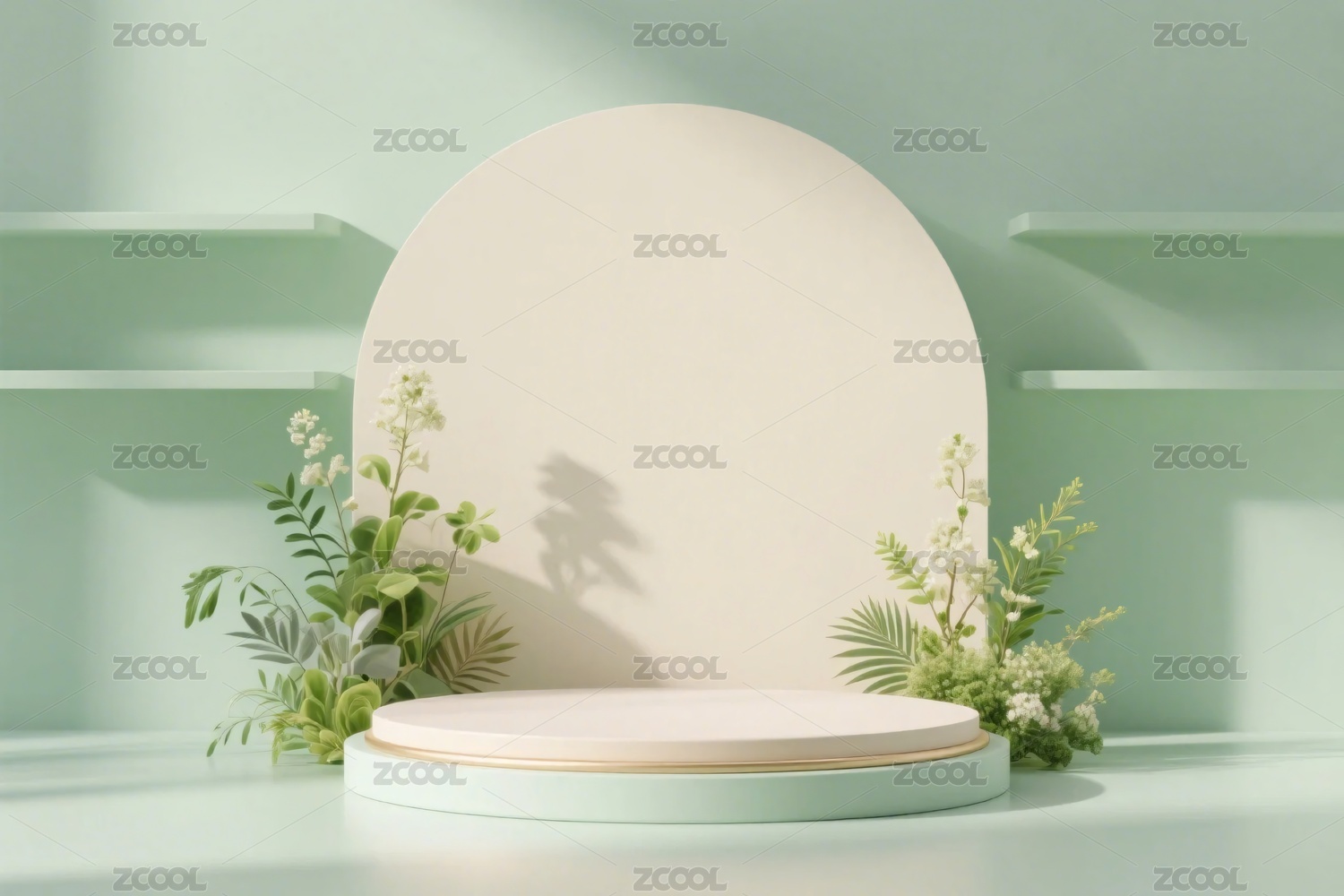 现代简约风格的植物背景展示台