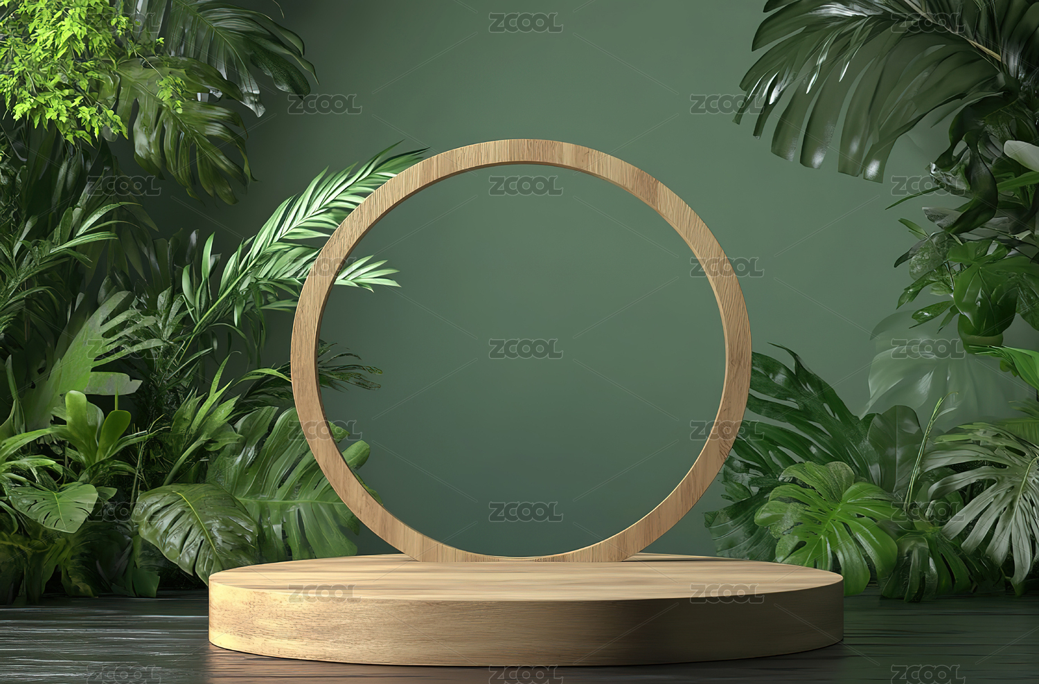绿色,植物,叶子,展示台,木质,圆形,自然,装饰,简约,现代