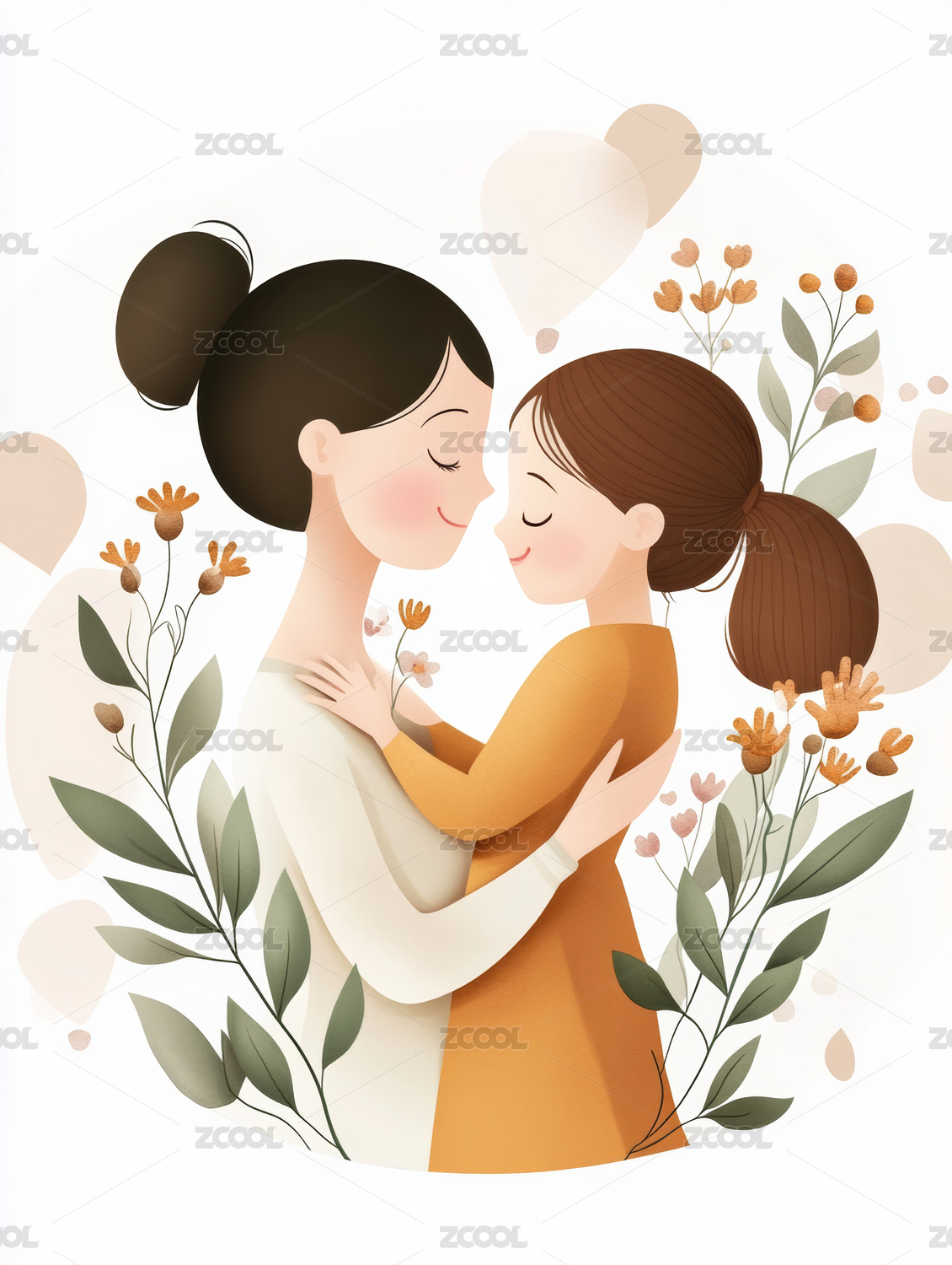母女相拥母婴促销插画