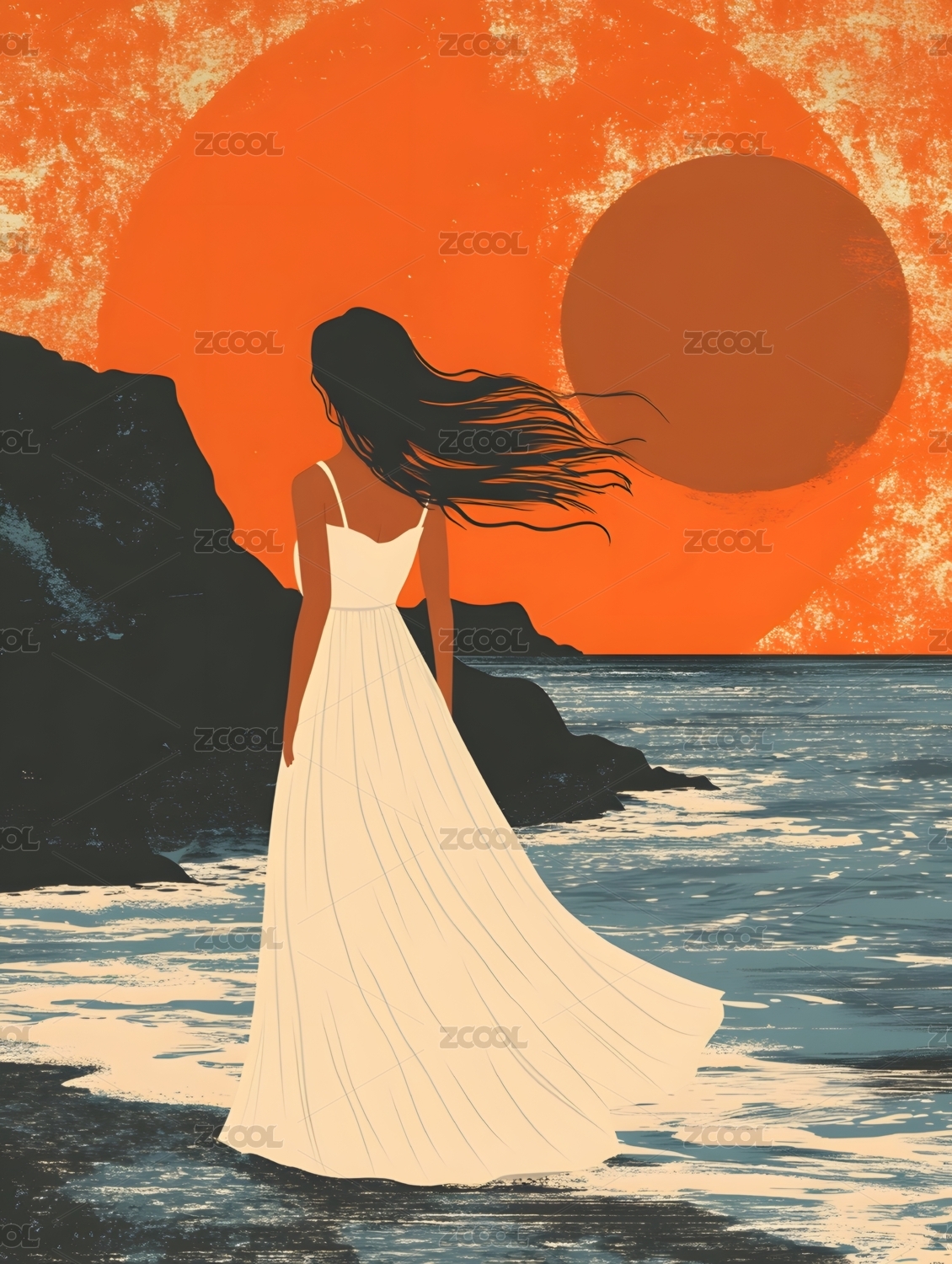 粉黑少女时尚肖像大头照矢量扁平化设计背景