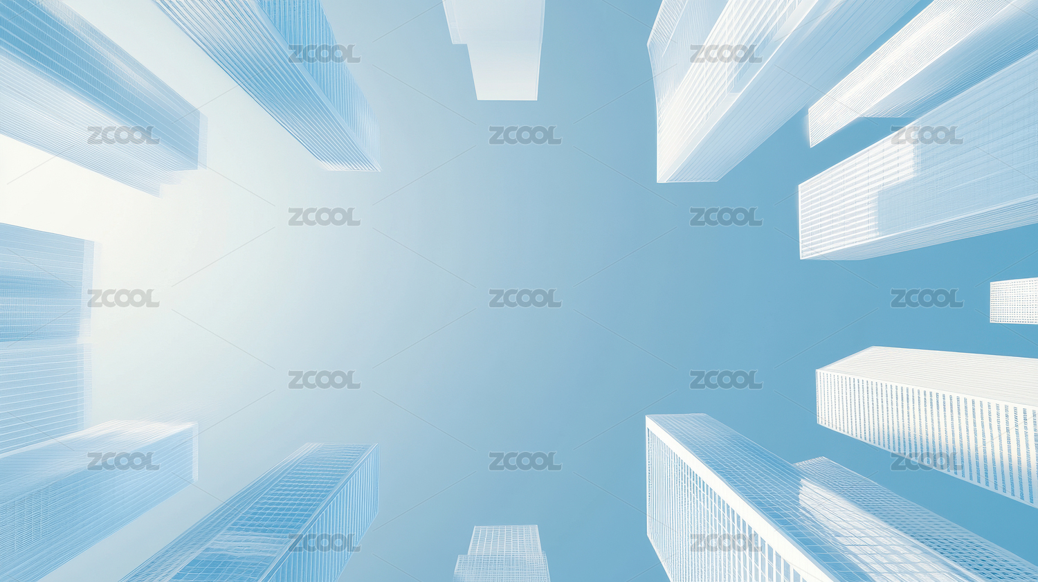 蓝色天空下的玻璃建筑物,抽象极简设计
