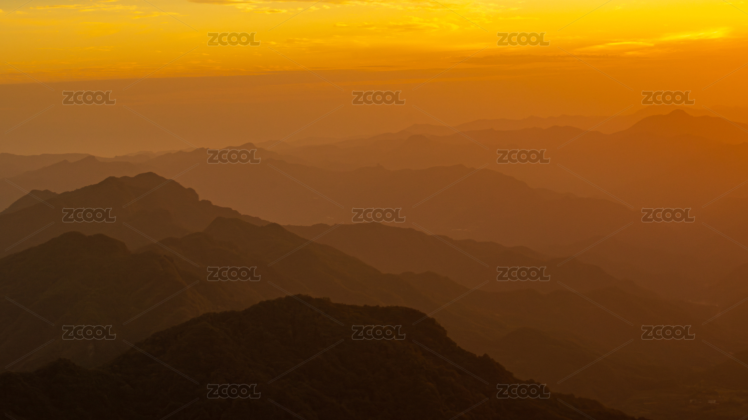 清晨暖色光线环境中起伏的山峦