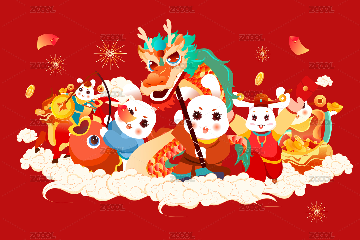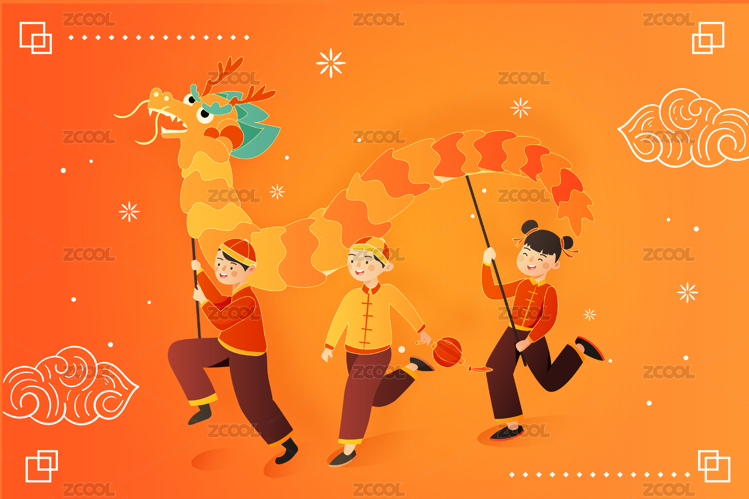 2020鼠年春节舞龙喜庆中国风背景矢量插画