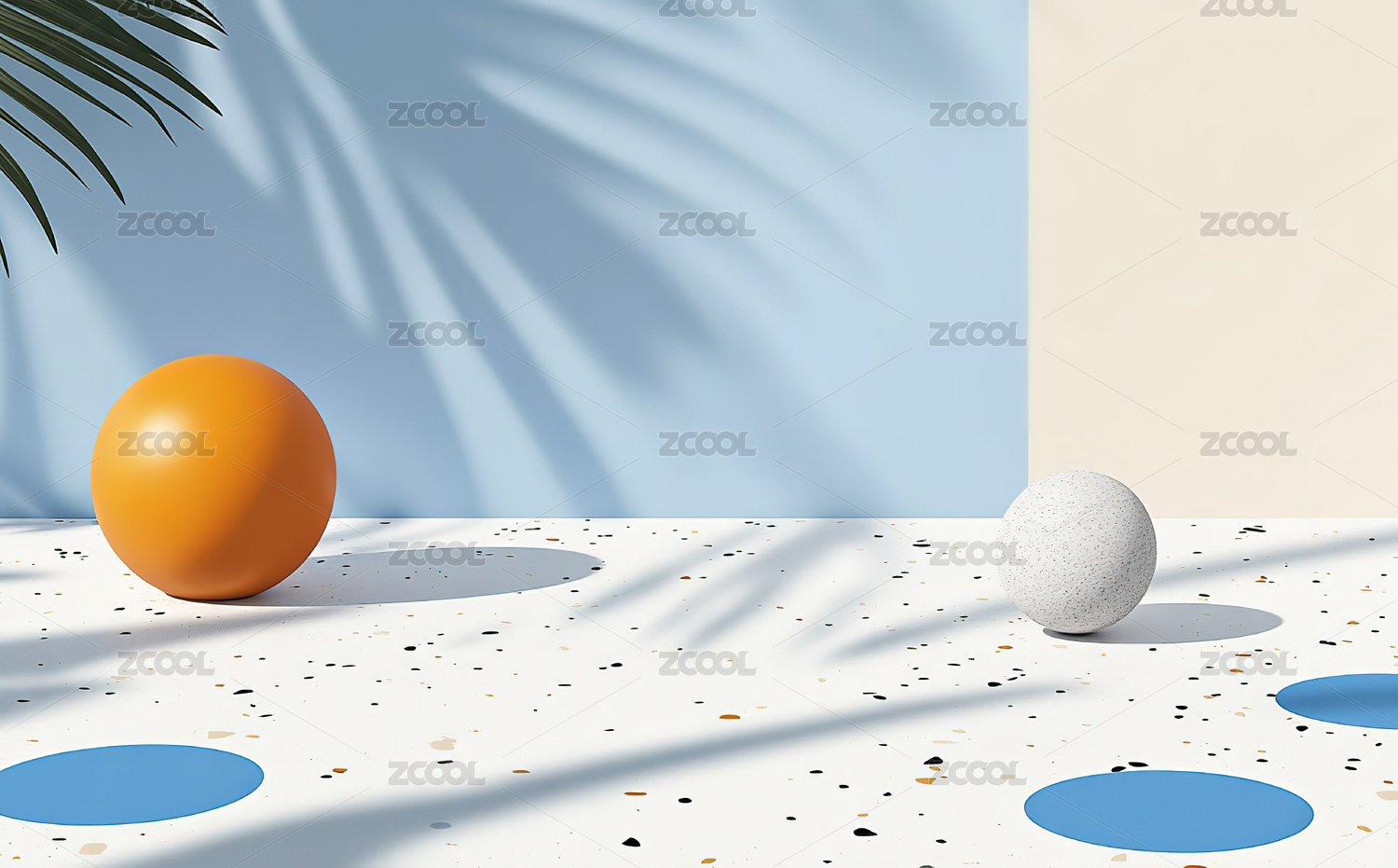蓝色背景上的棕榈叶特写镜头