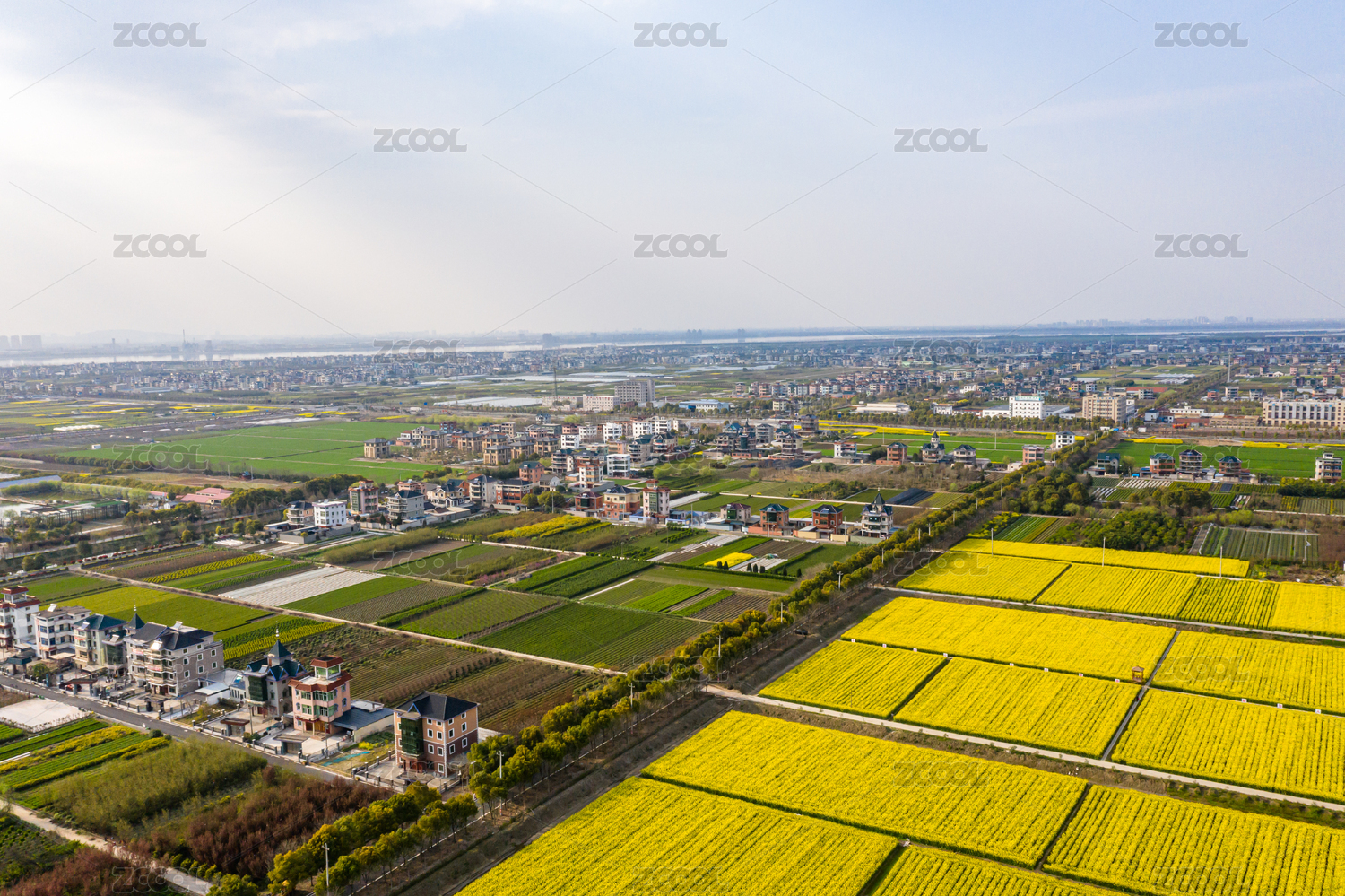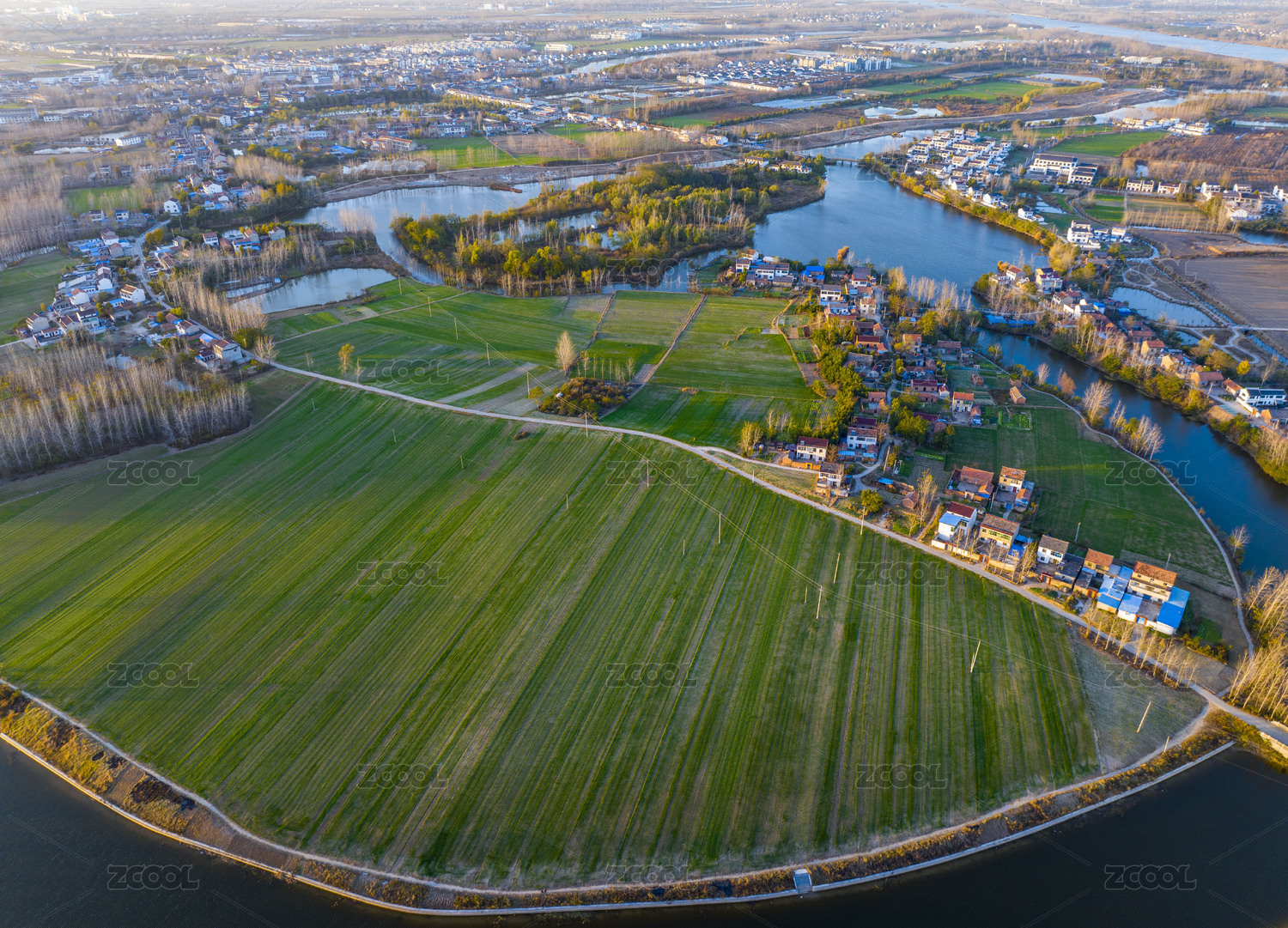 航拍江苏省淮安市金湖县城乡春日景象