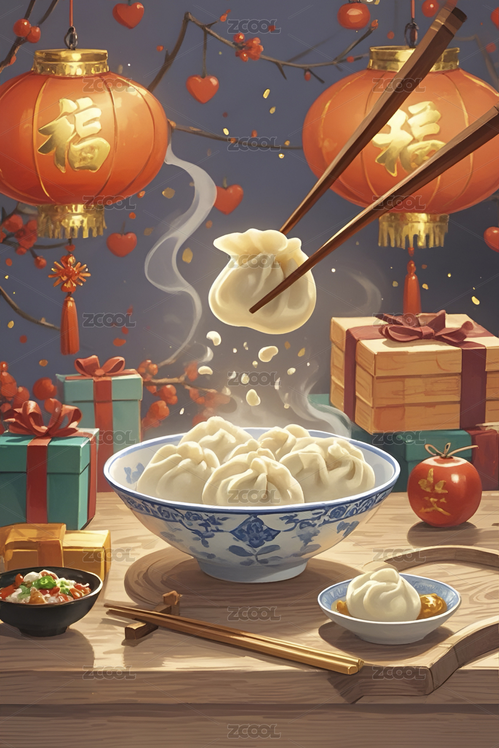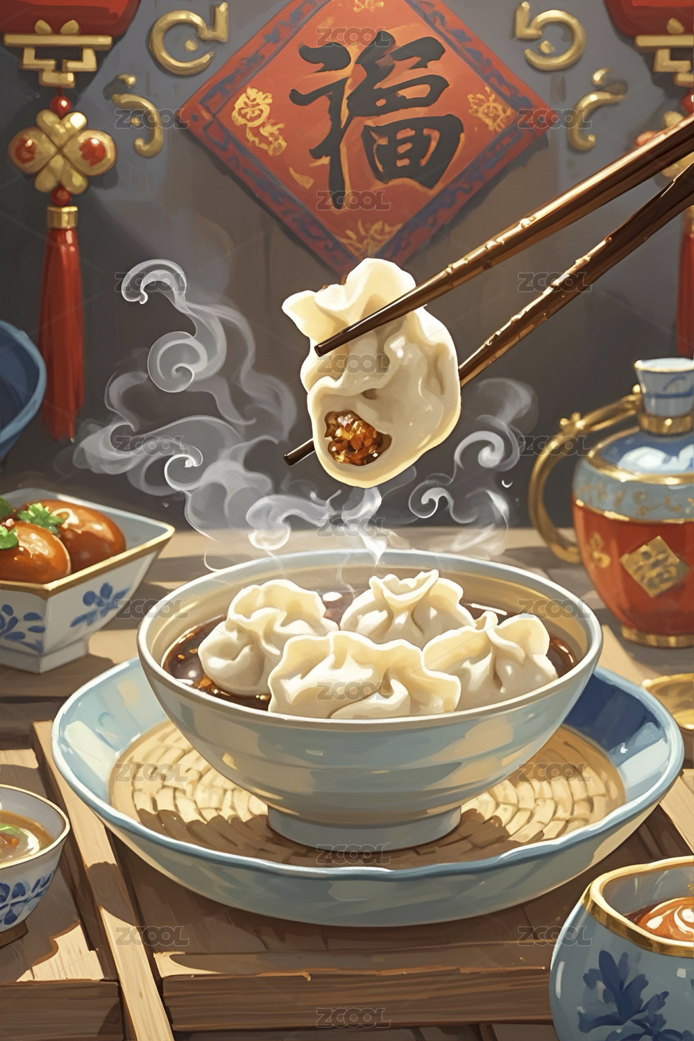 插画,传统,静物,传统节日,新年,盘子,饮食,碗,小吃,食品