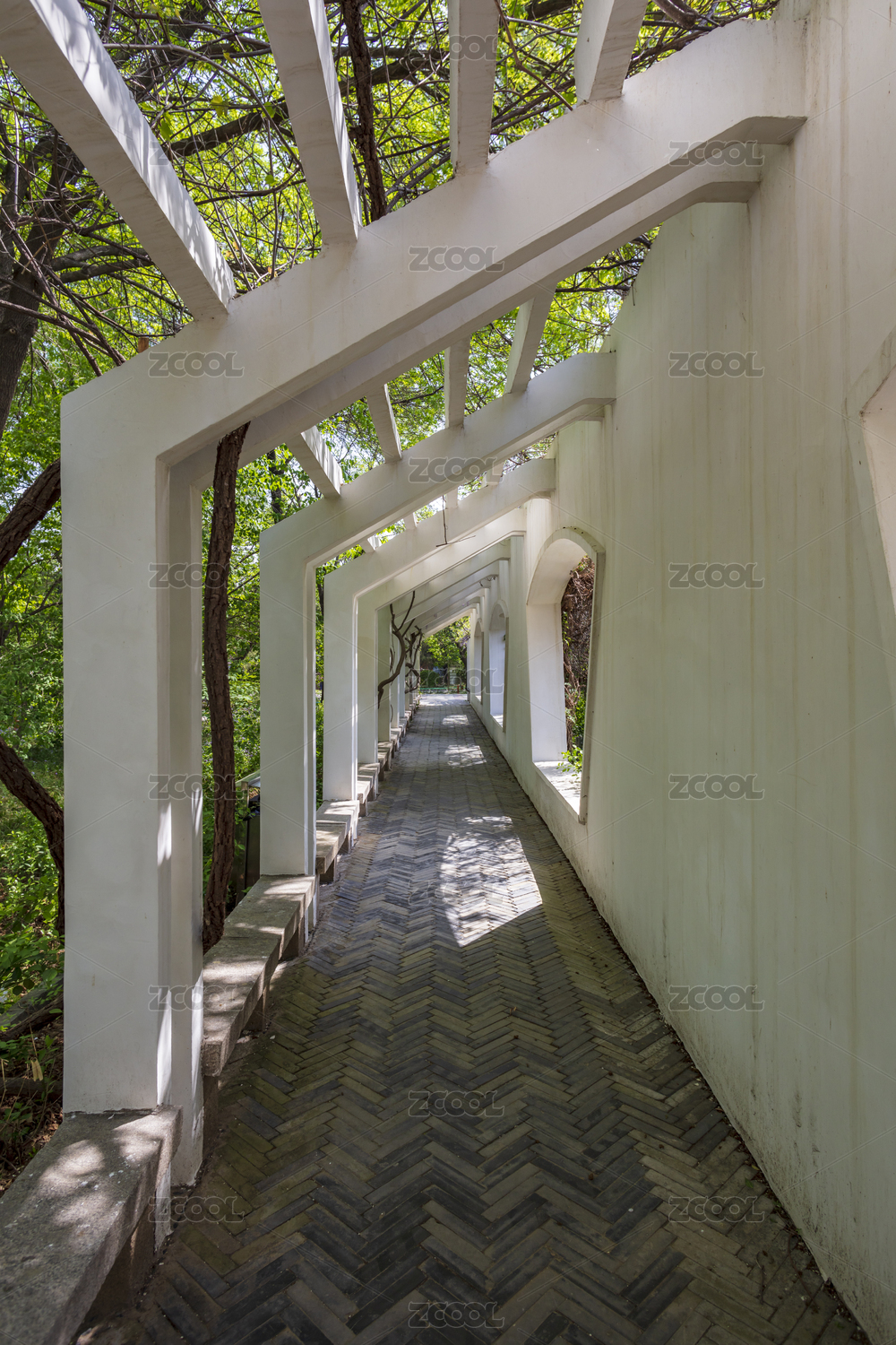 中国山东济南泉城公园白色长廊砖地
