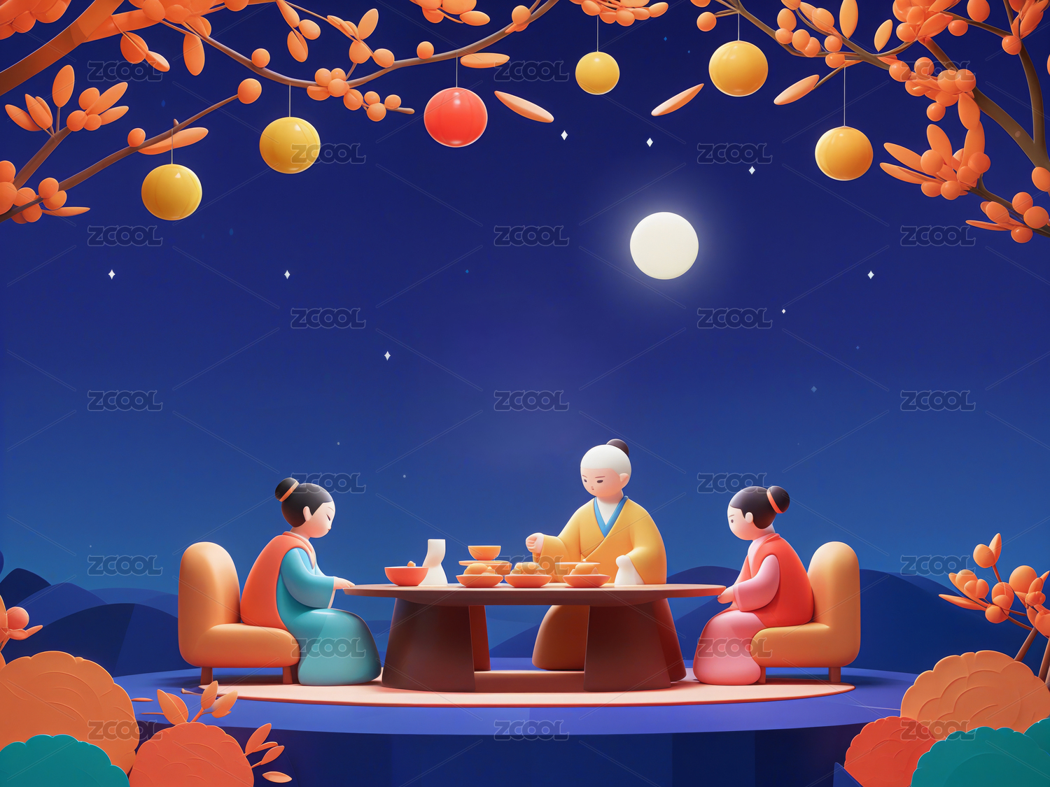 中秋团圆饭插画