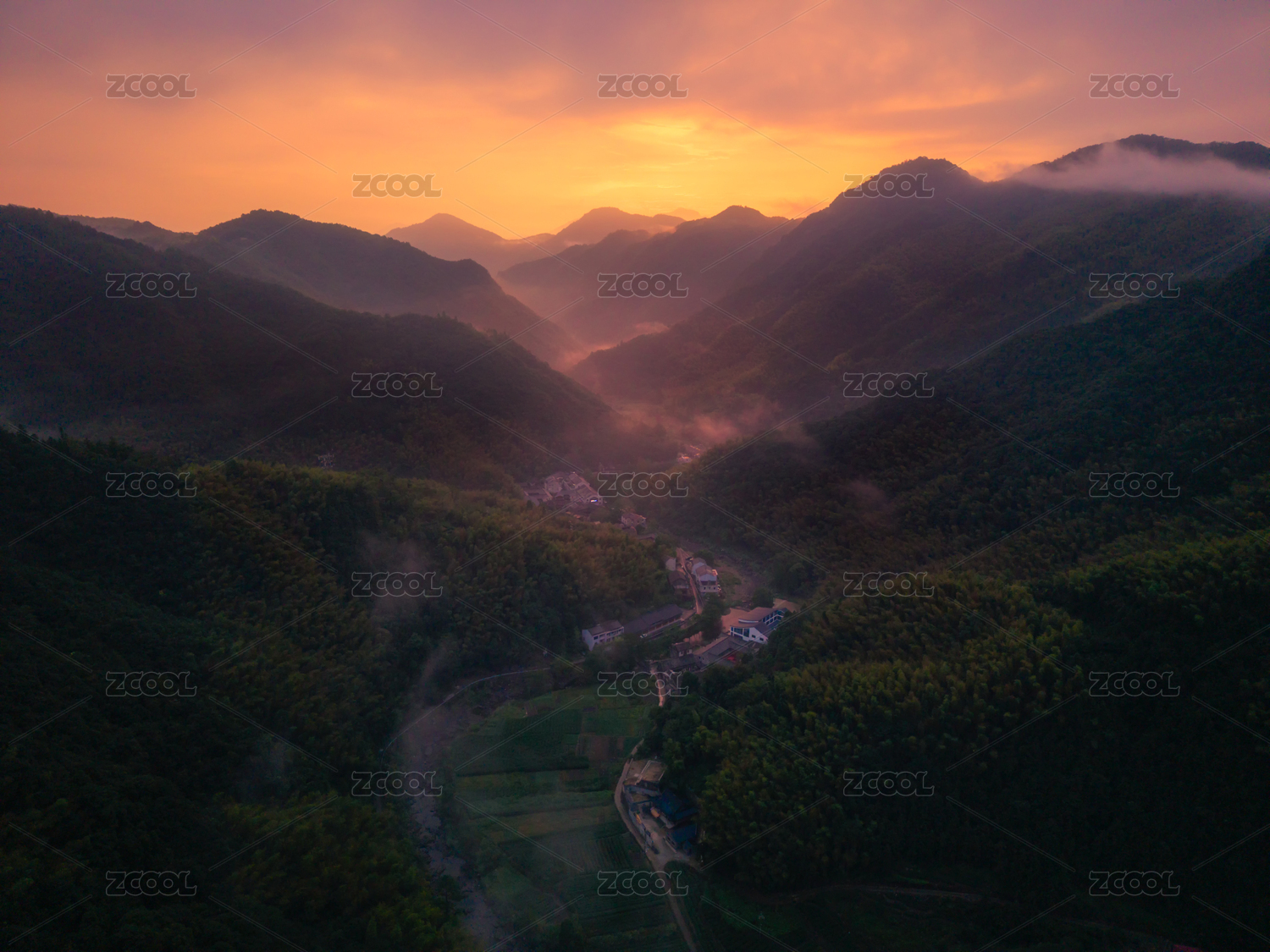 清晨,大山,大竹海,竹海,深山,村庄,乡村,盘山公路,山坳,自然风光