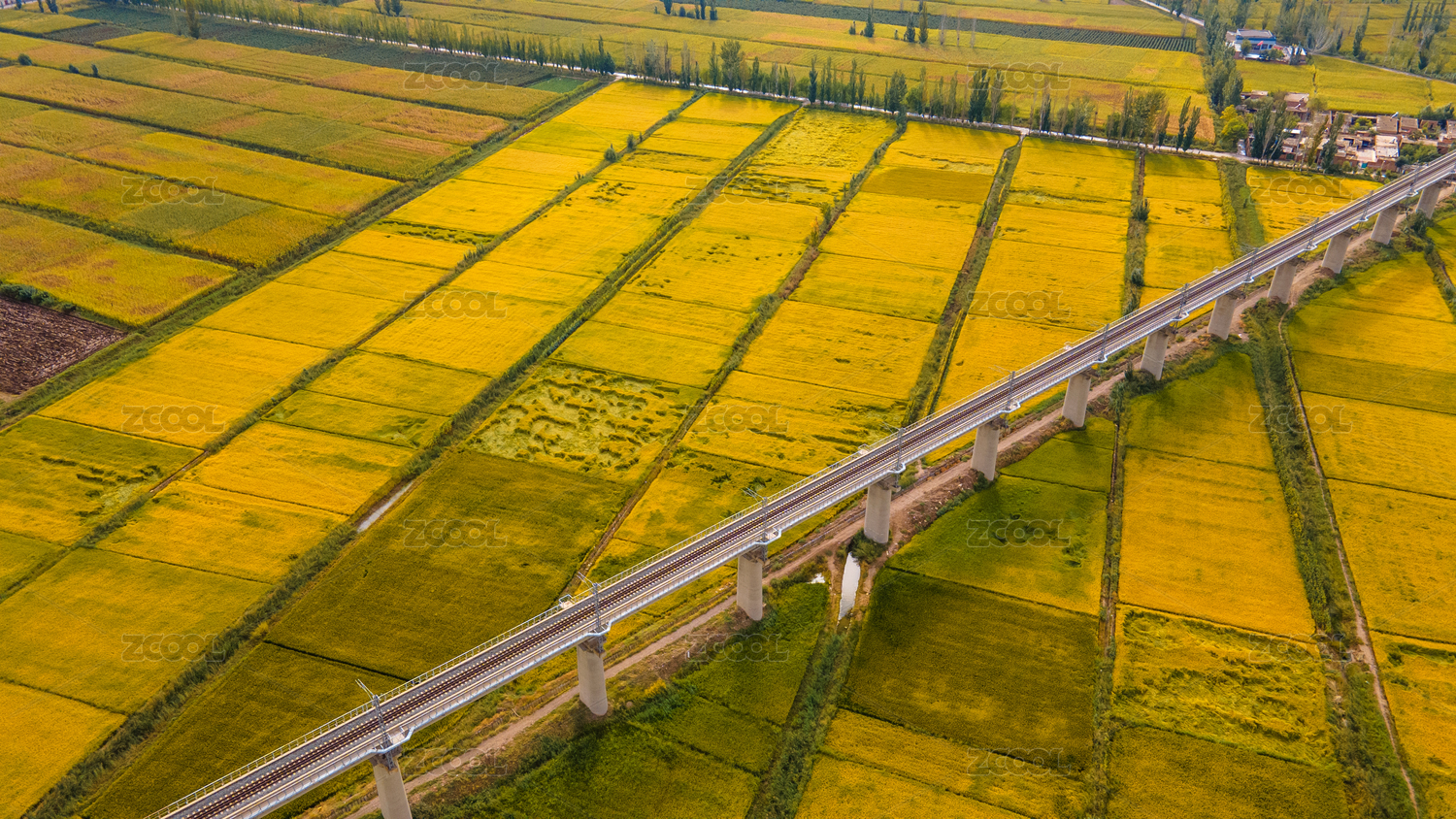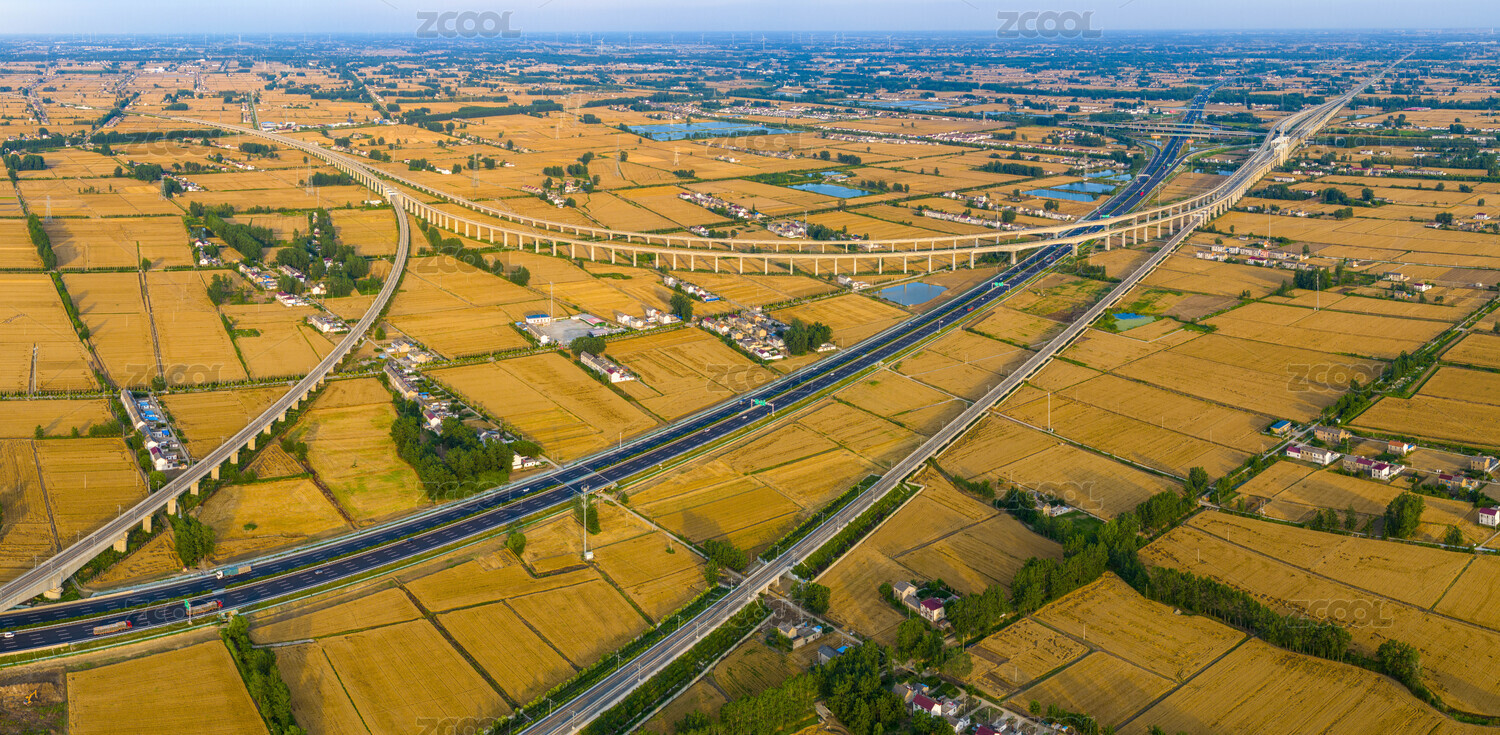 航拍秋日高铁穿越河南方城乡村田野大地景观