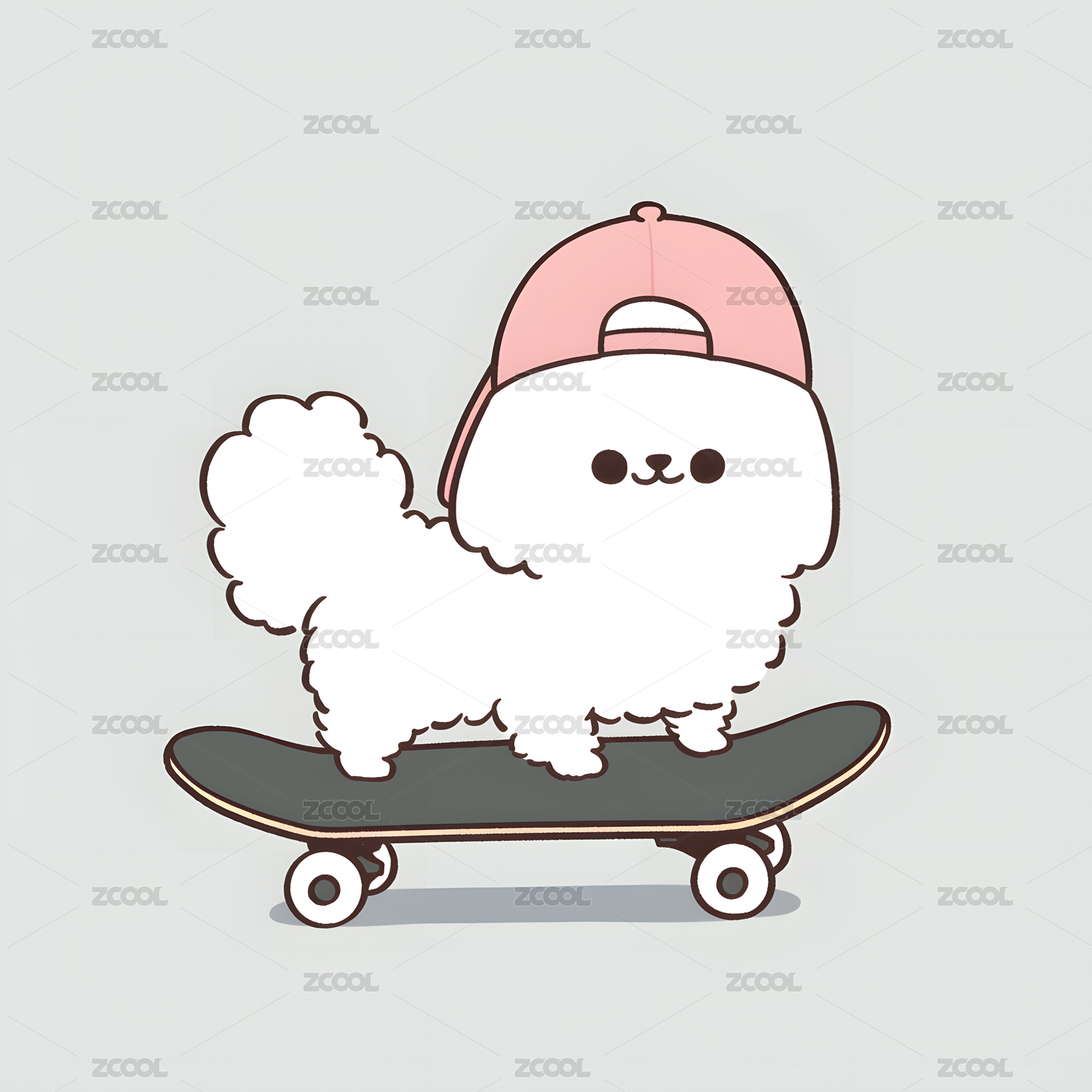 线条,风格,滑板,玩耍,小狗,动物,宠物,快乐,可爱,呆萌