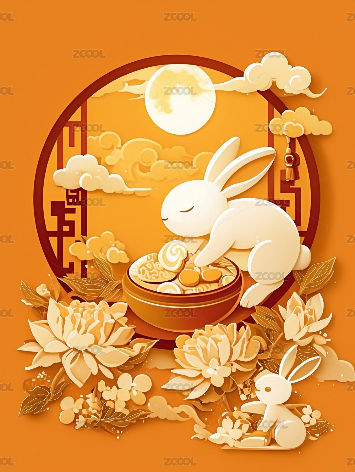AI绘画,月亮,兔子,月饼,花,AIGC202403,中秋节,玉兔