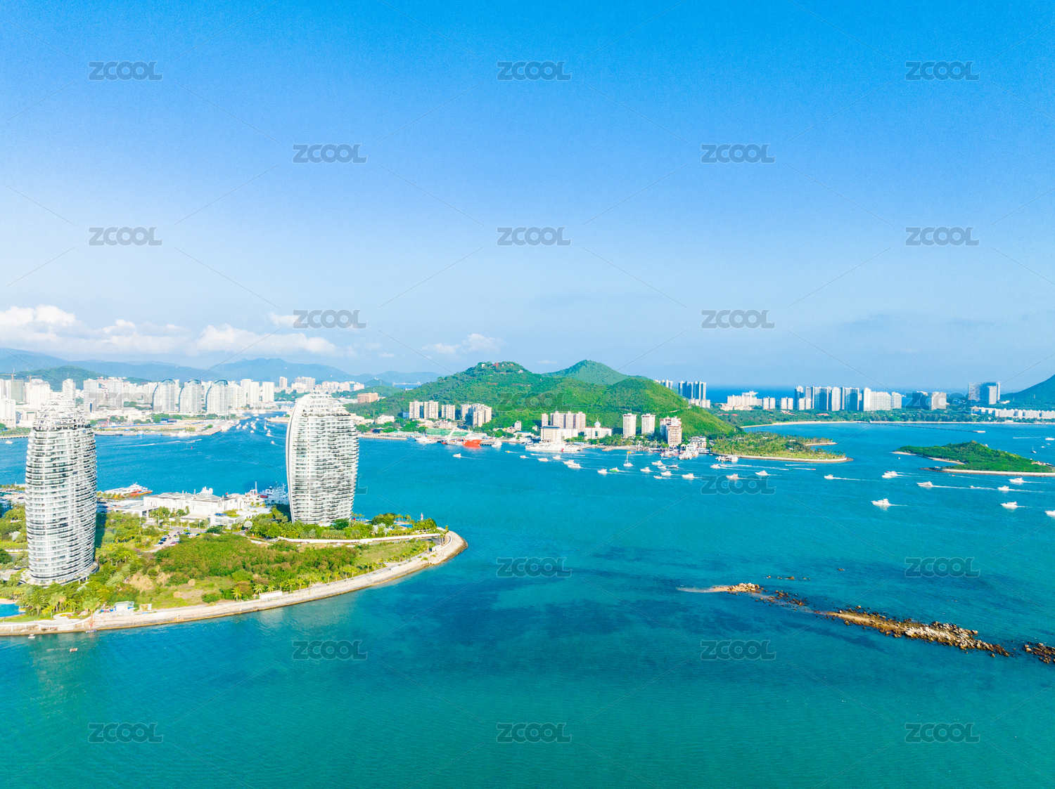风景,航拍视角,无人,旅行,自贸港,旅游目的地,三亚,天空,蓝天白云,地标建筑